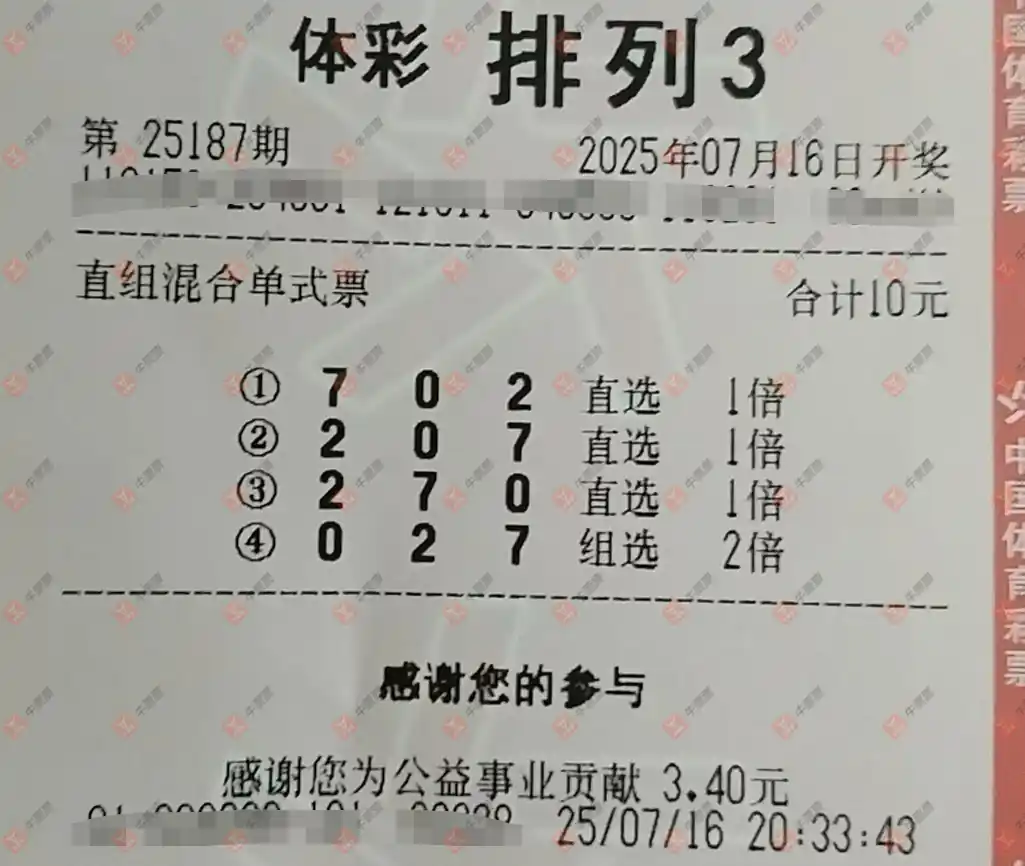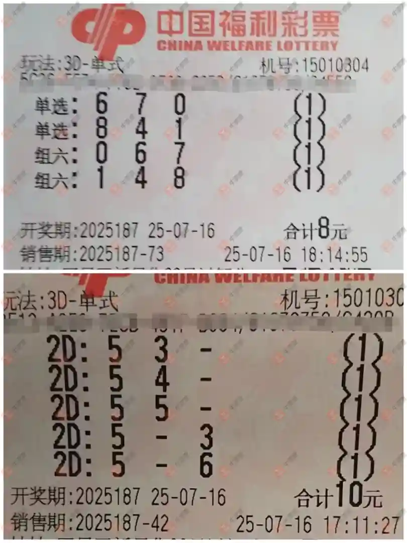 福彩3D 2025187期