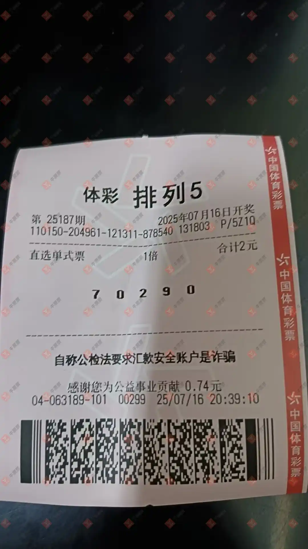 排列三 2025187期