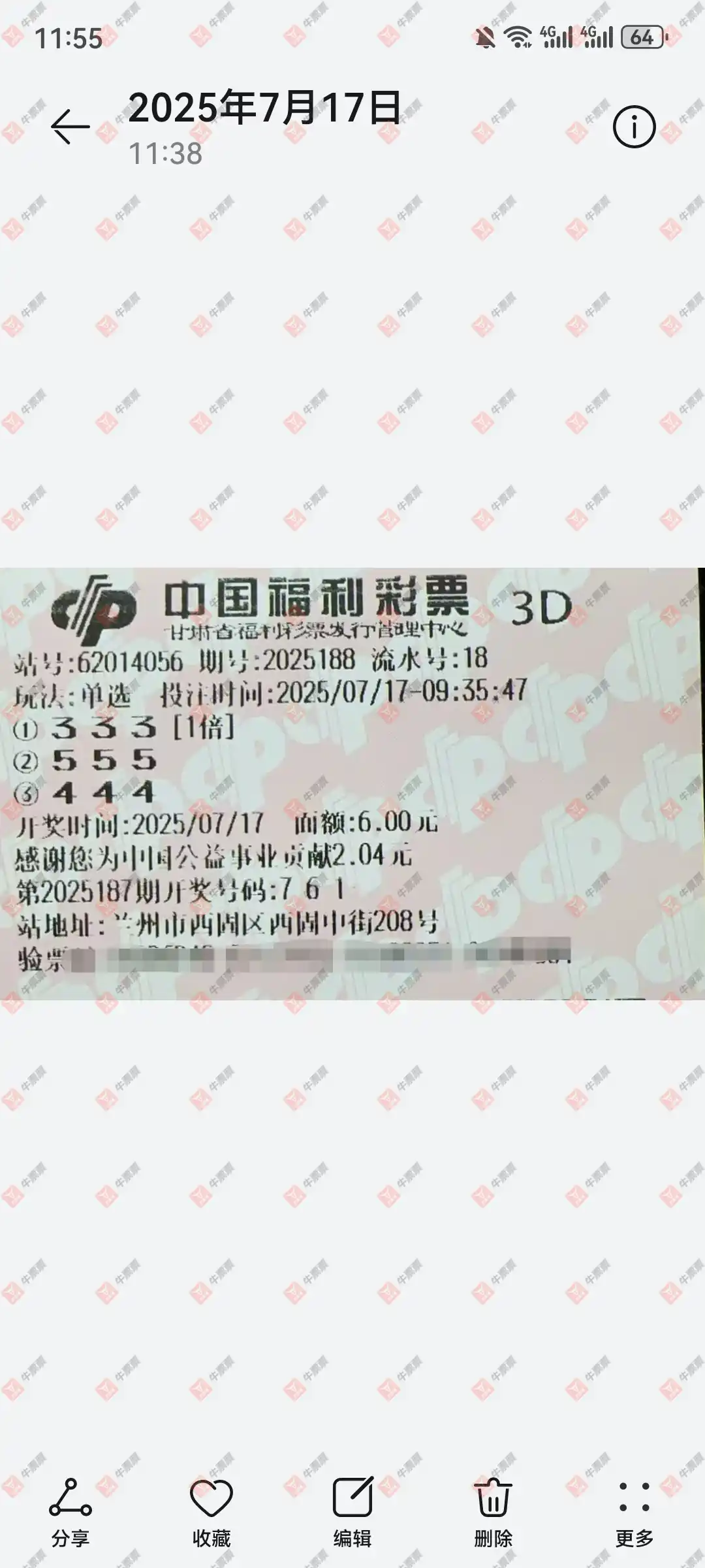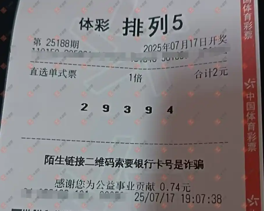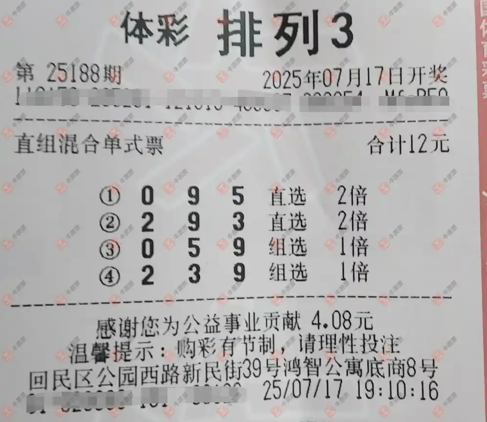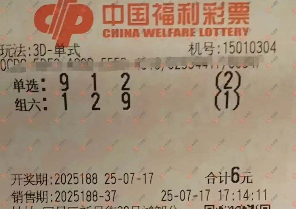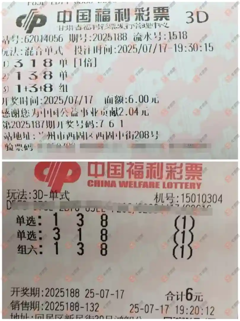 福彩3D 2025188期 晒中
