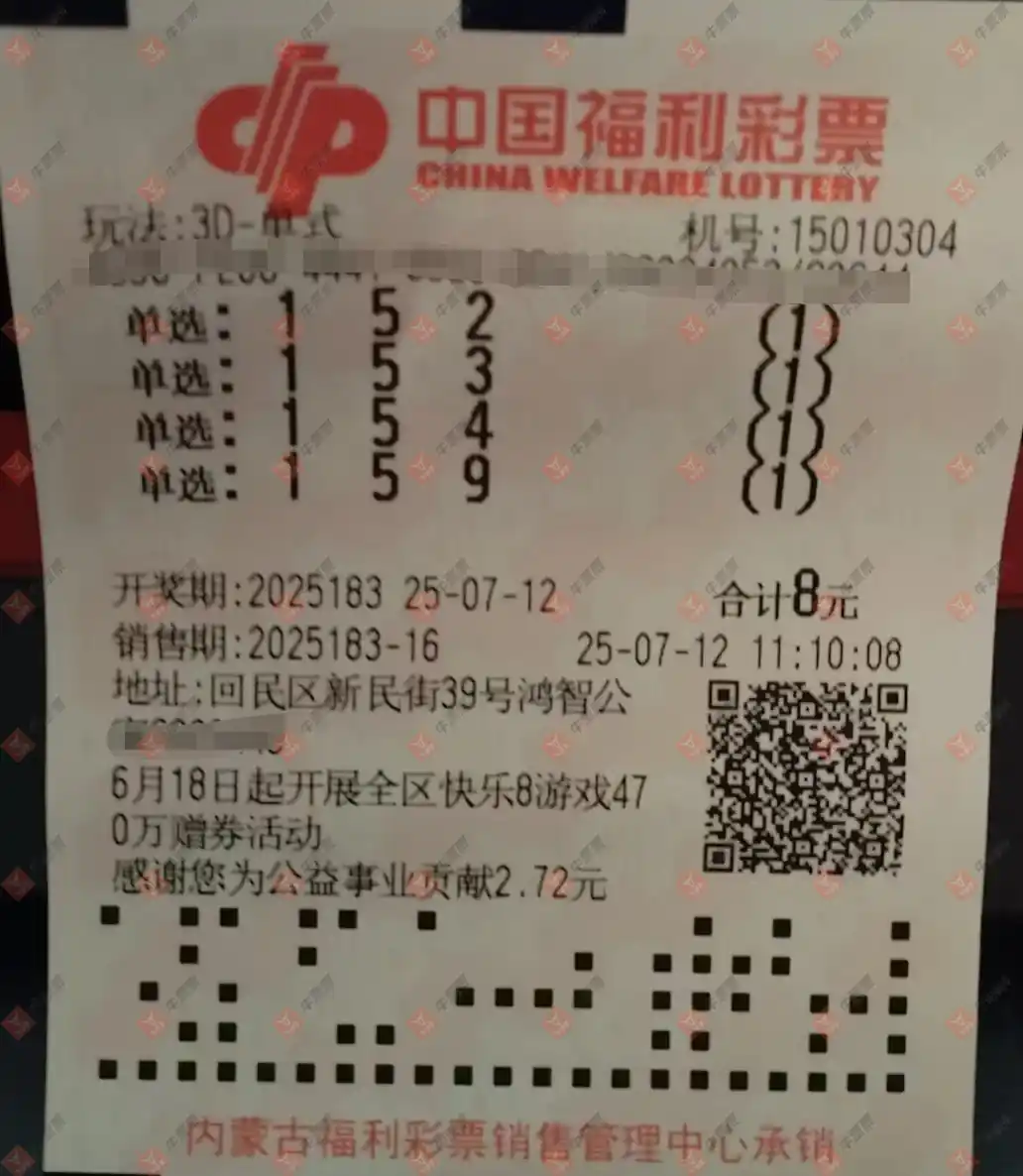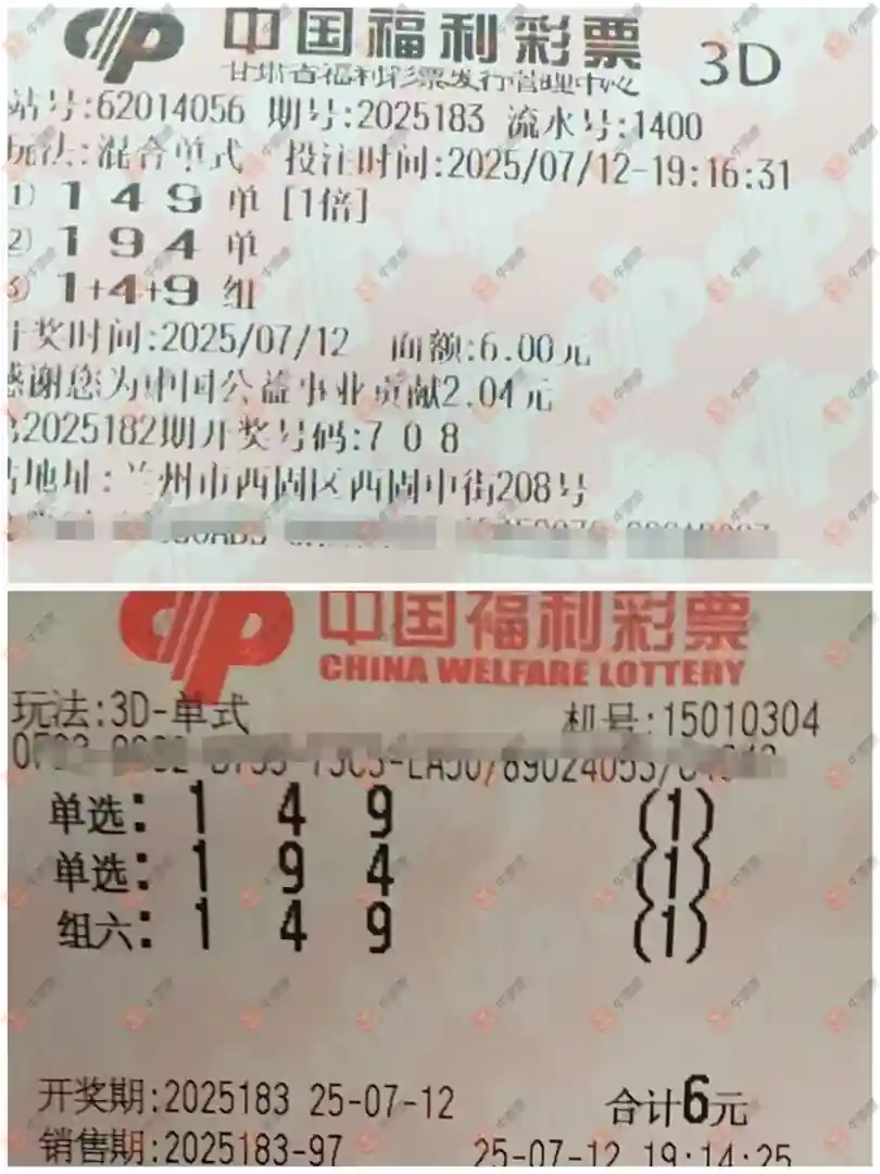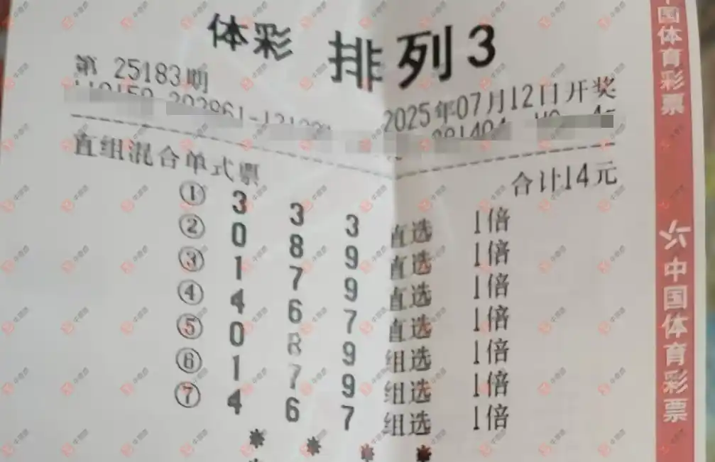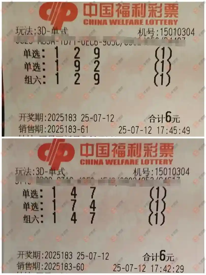 福彩3D 2025183期