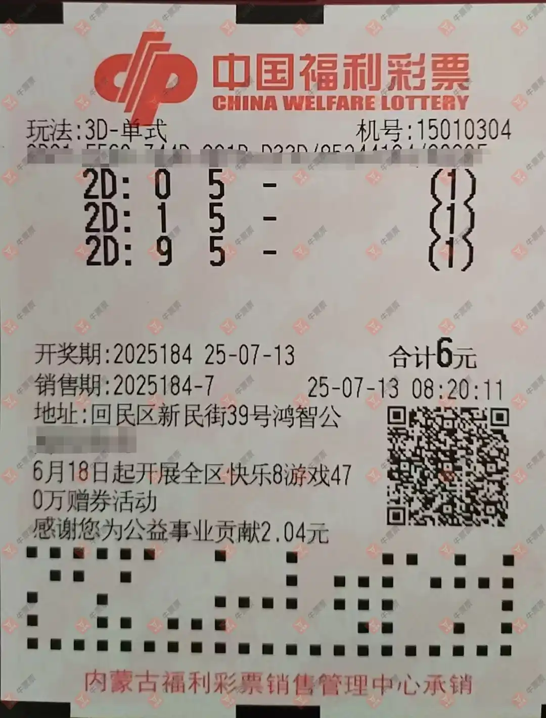 七星彩 2025078期 晒中