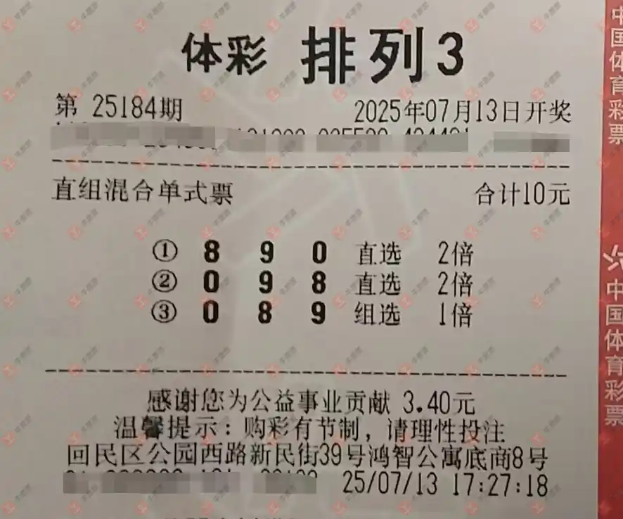 福彩3D 2025184期