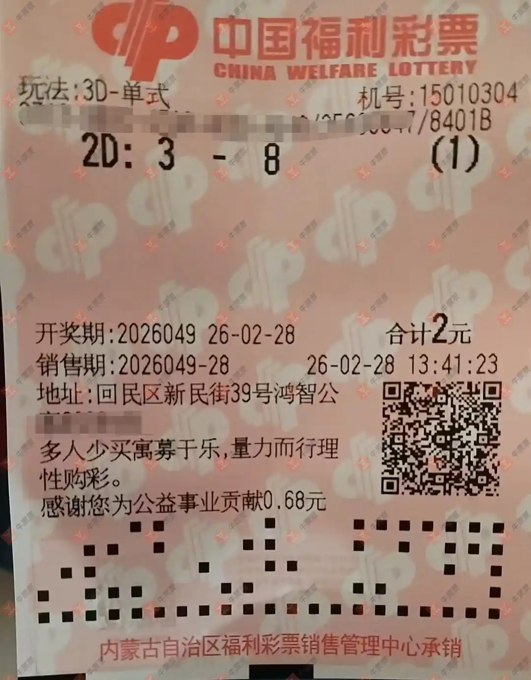 福彩3D 2026049期