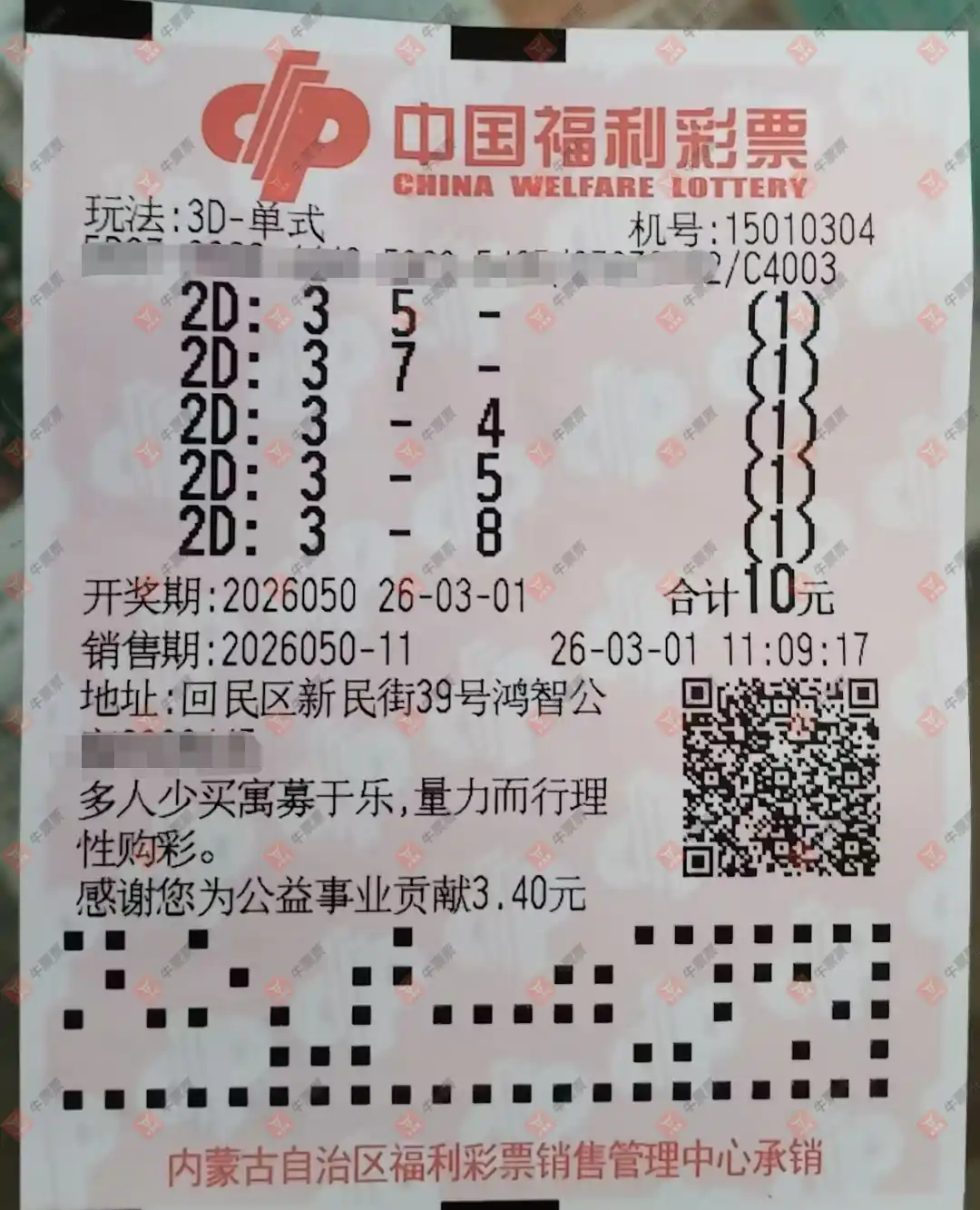 福彩3D 2026050期