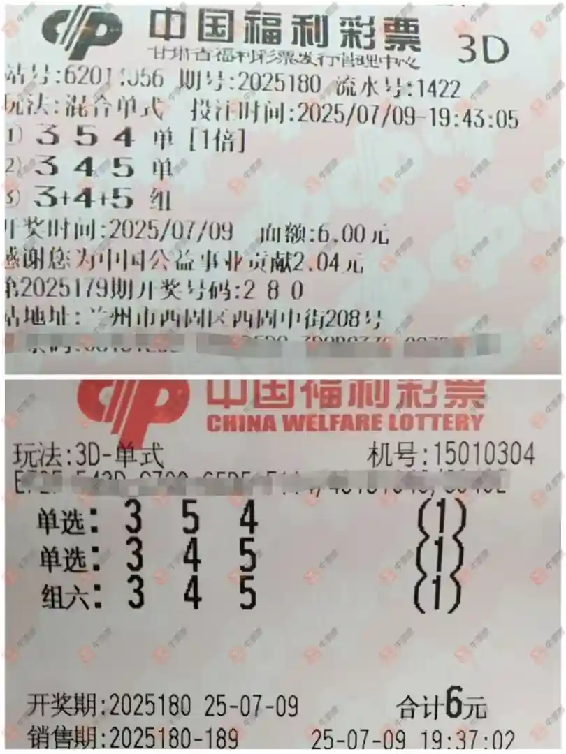 福彩3D 2025180期