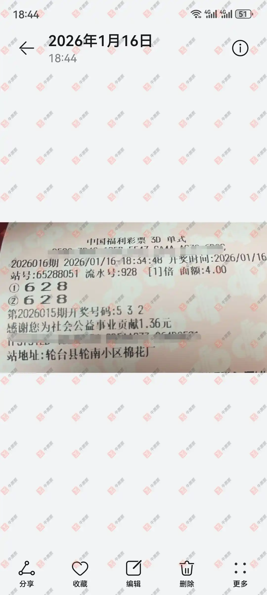 双色球 2026007期 晒中