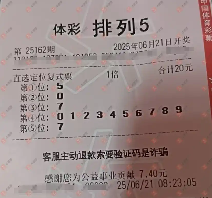 七星彩 2025070期 晒中
