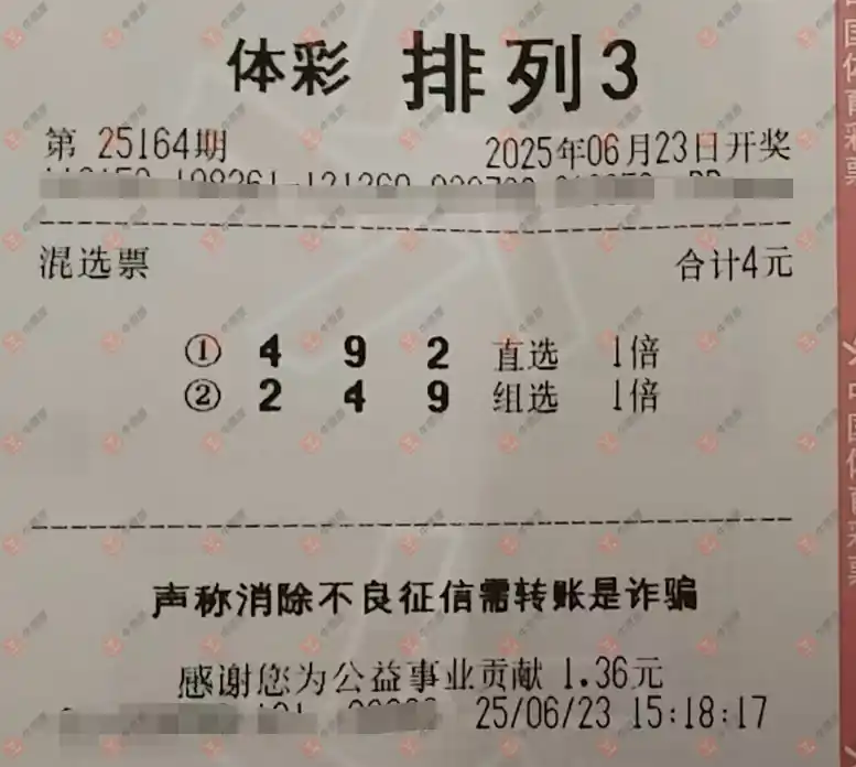 福彩3D 2025164期