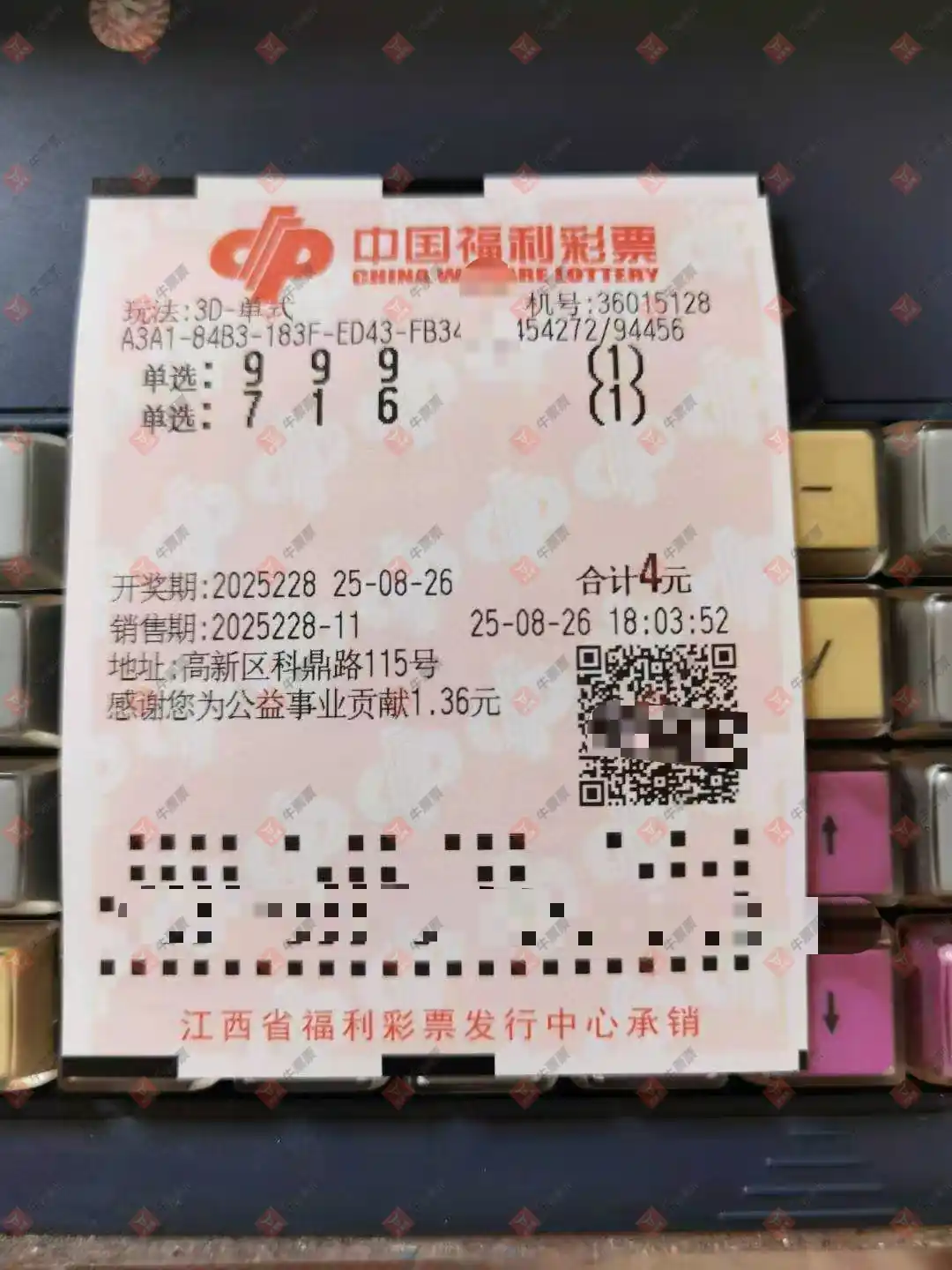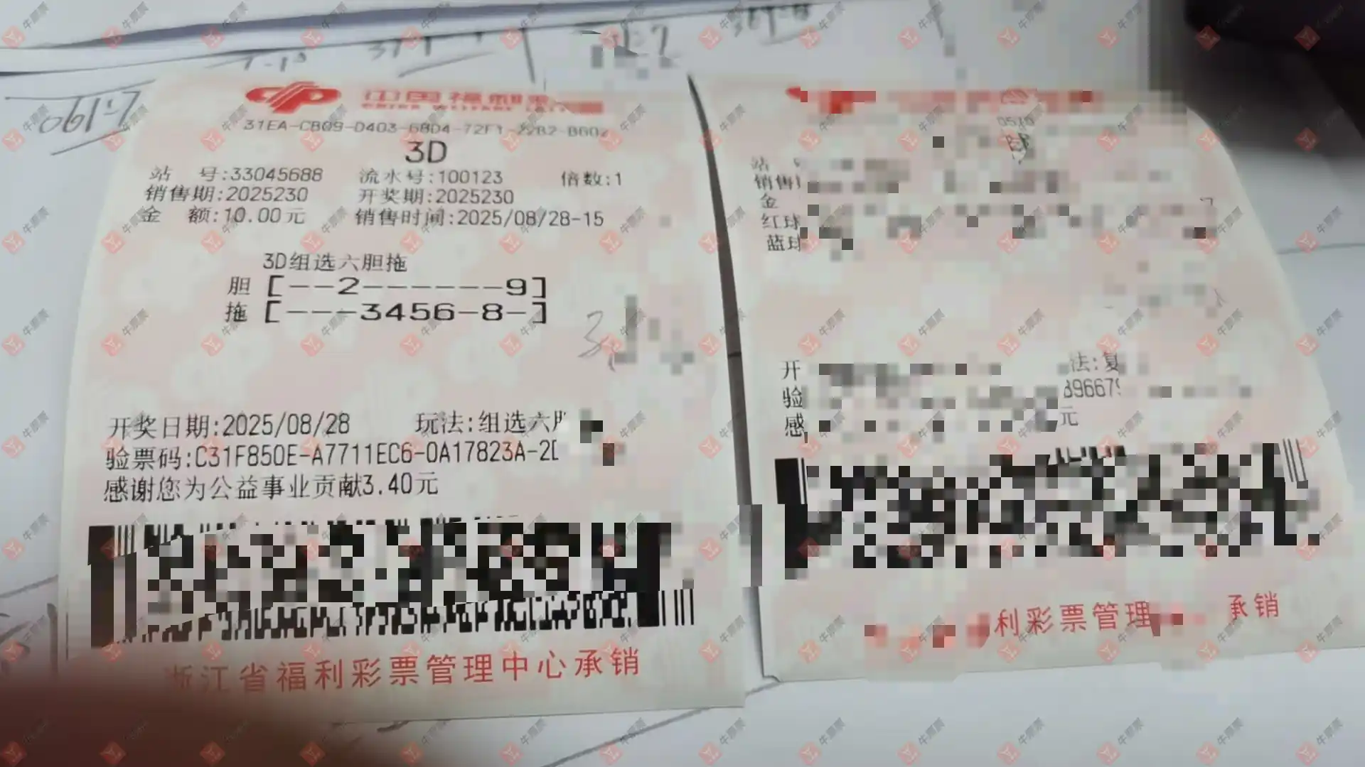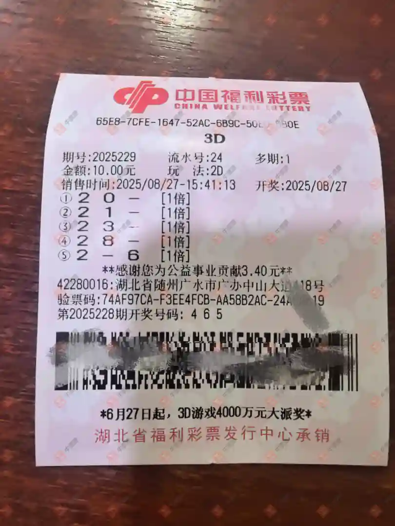 福彩3D 2025232期 晒中