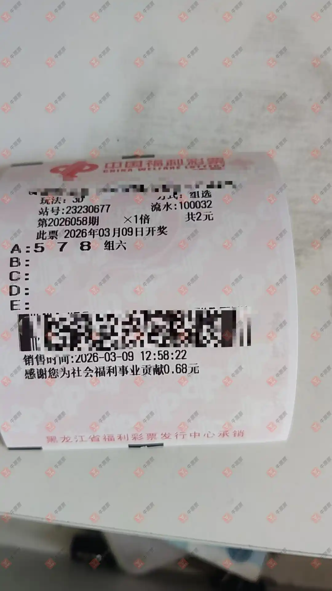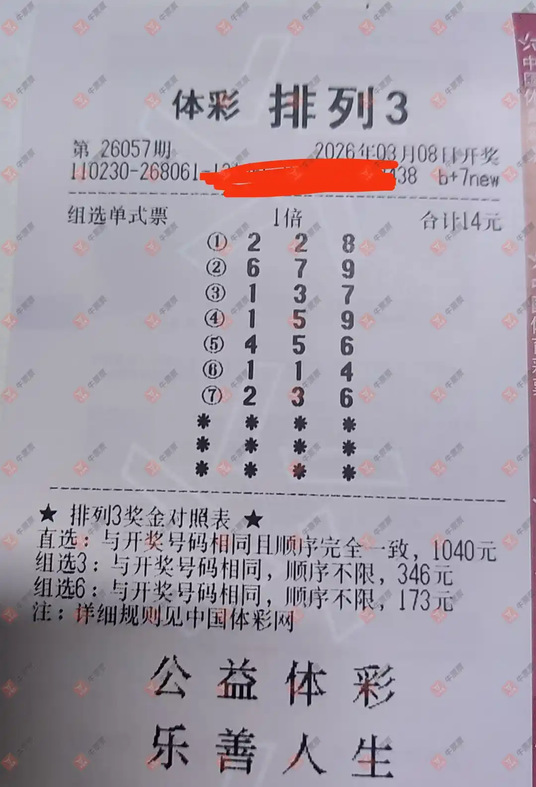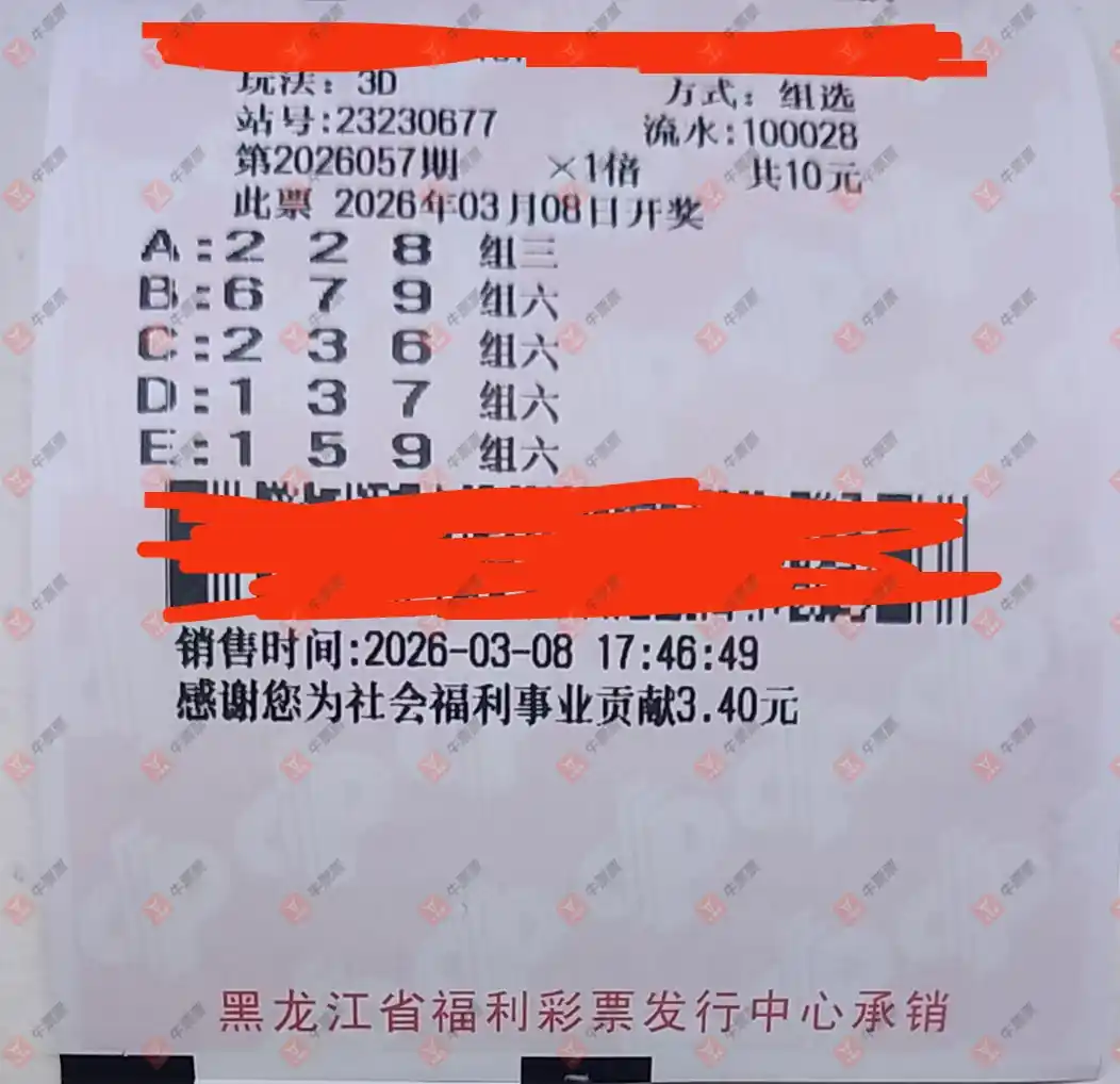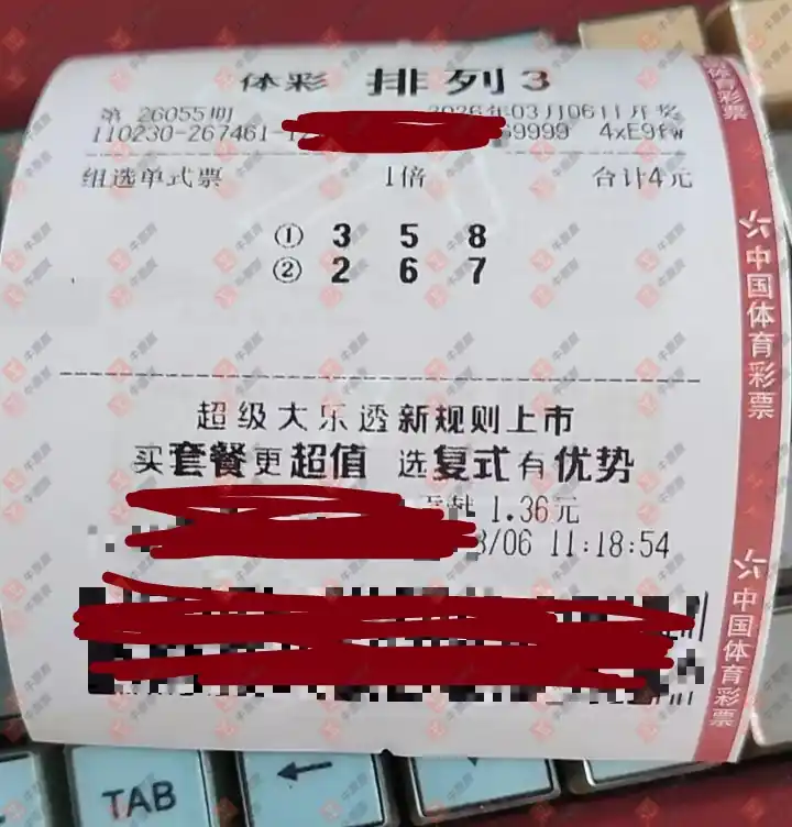 福彩3D 2026058期 晒中