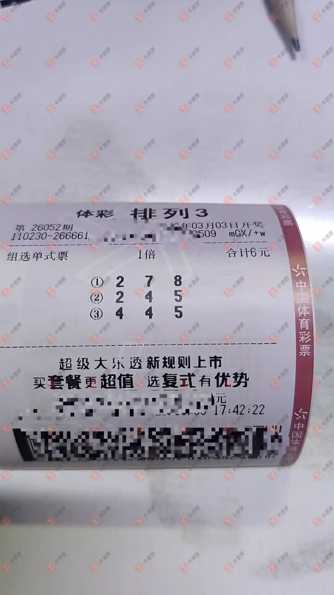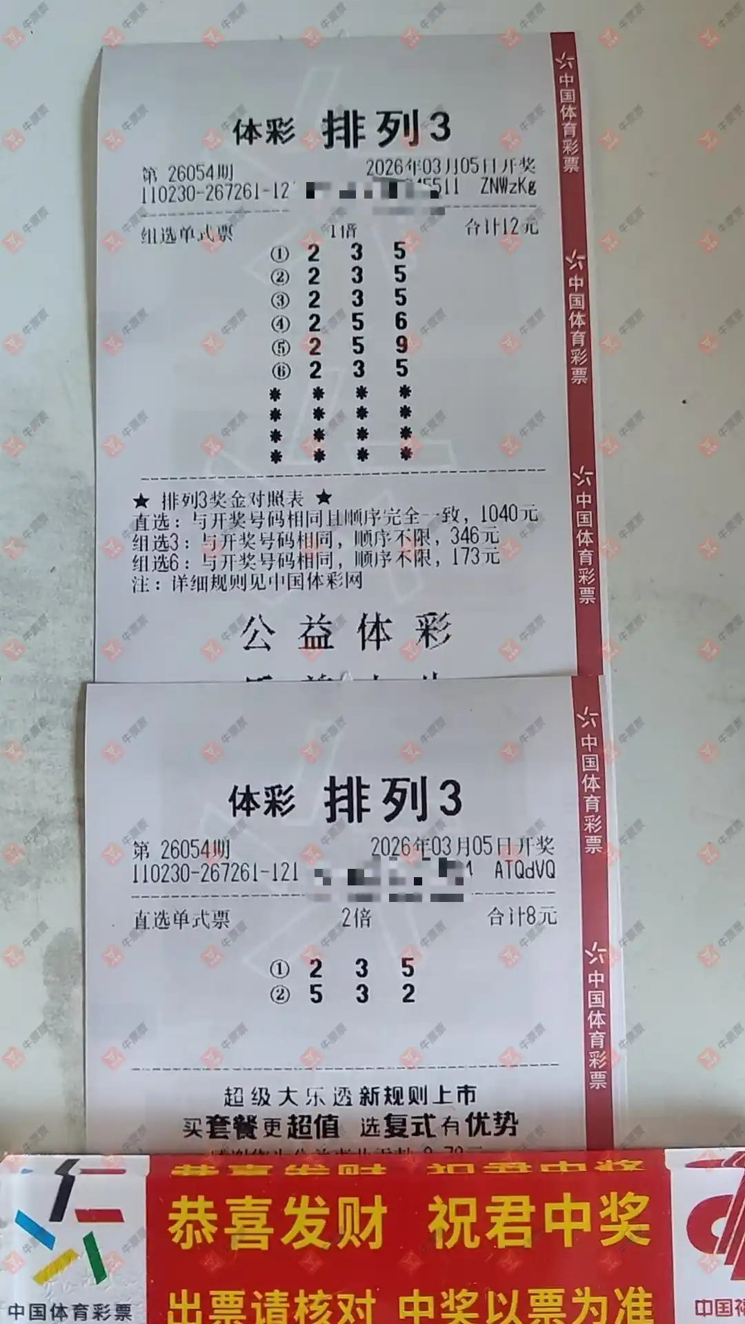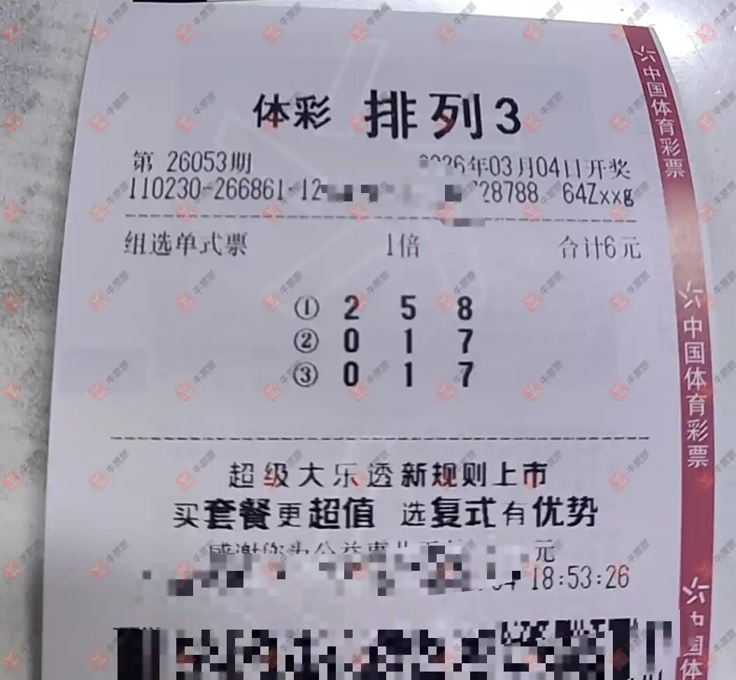 福彩3D 2026053期 晒中