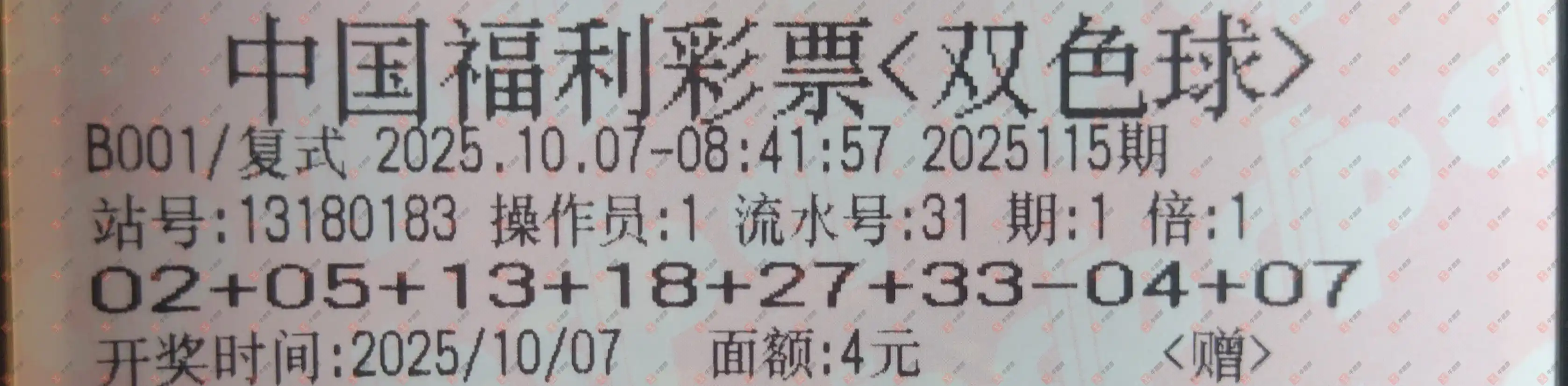 双色球 2025115期 晒中