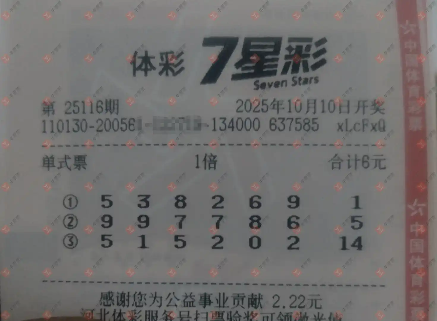 双色球 2025116期 晒中