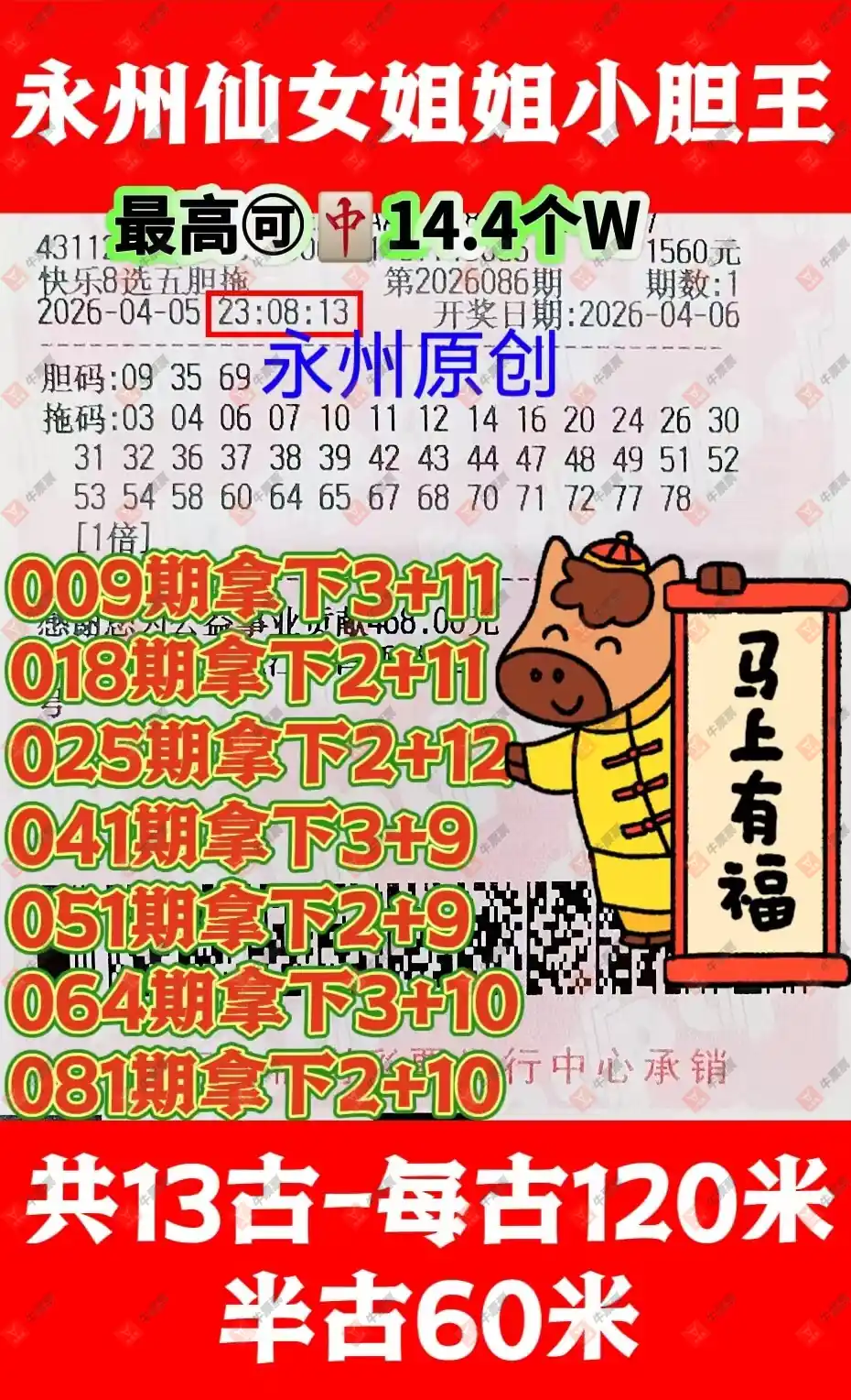 快乐8 2026085期 晒中