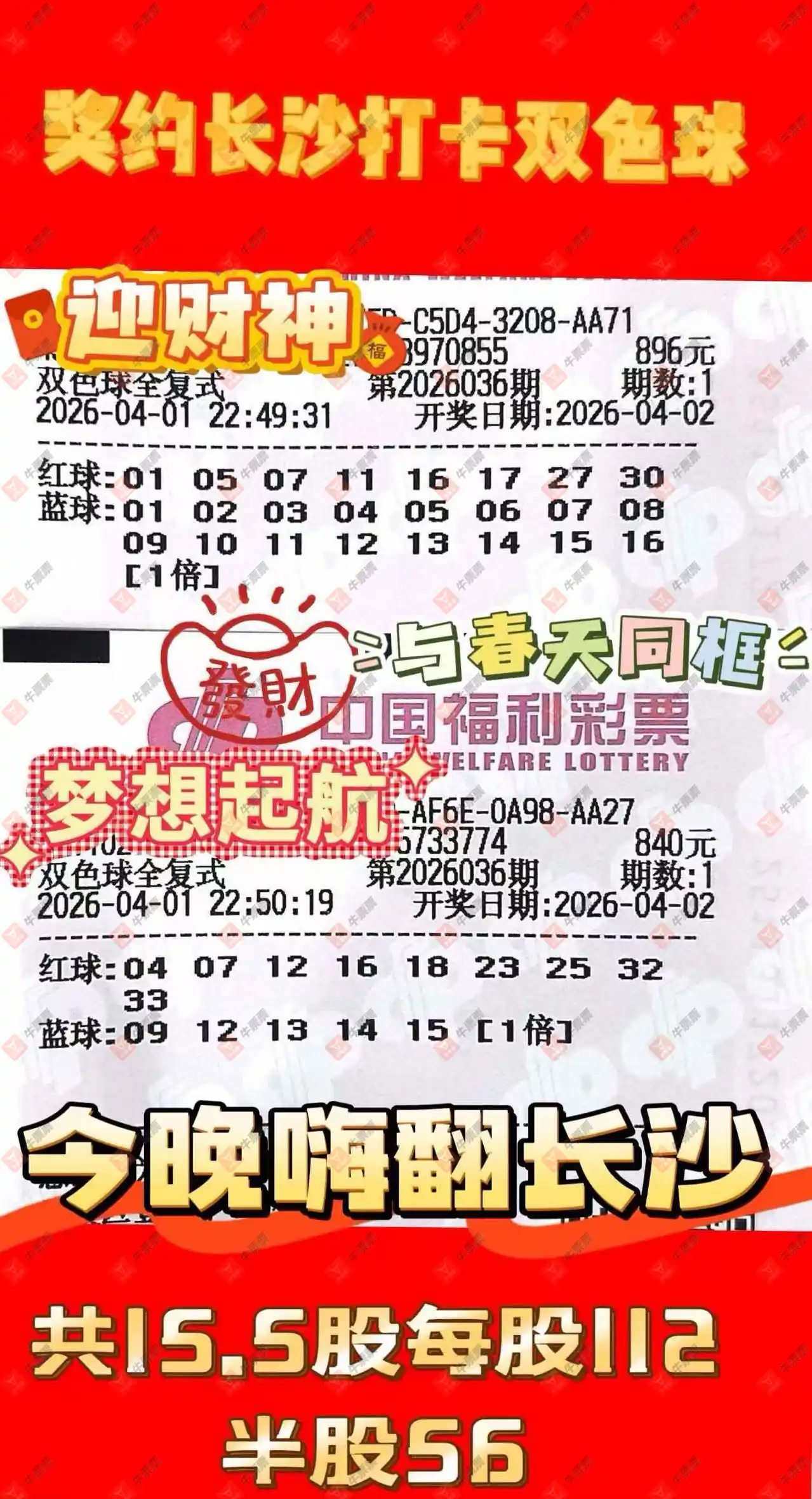 双色球 2026036期 晒中