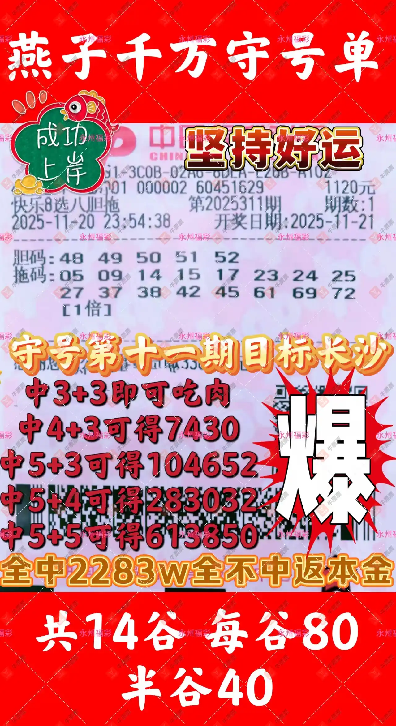 快乐8 2025311期 晒中