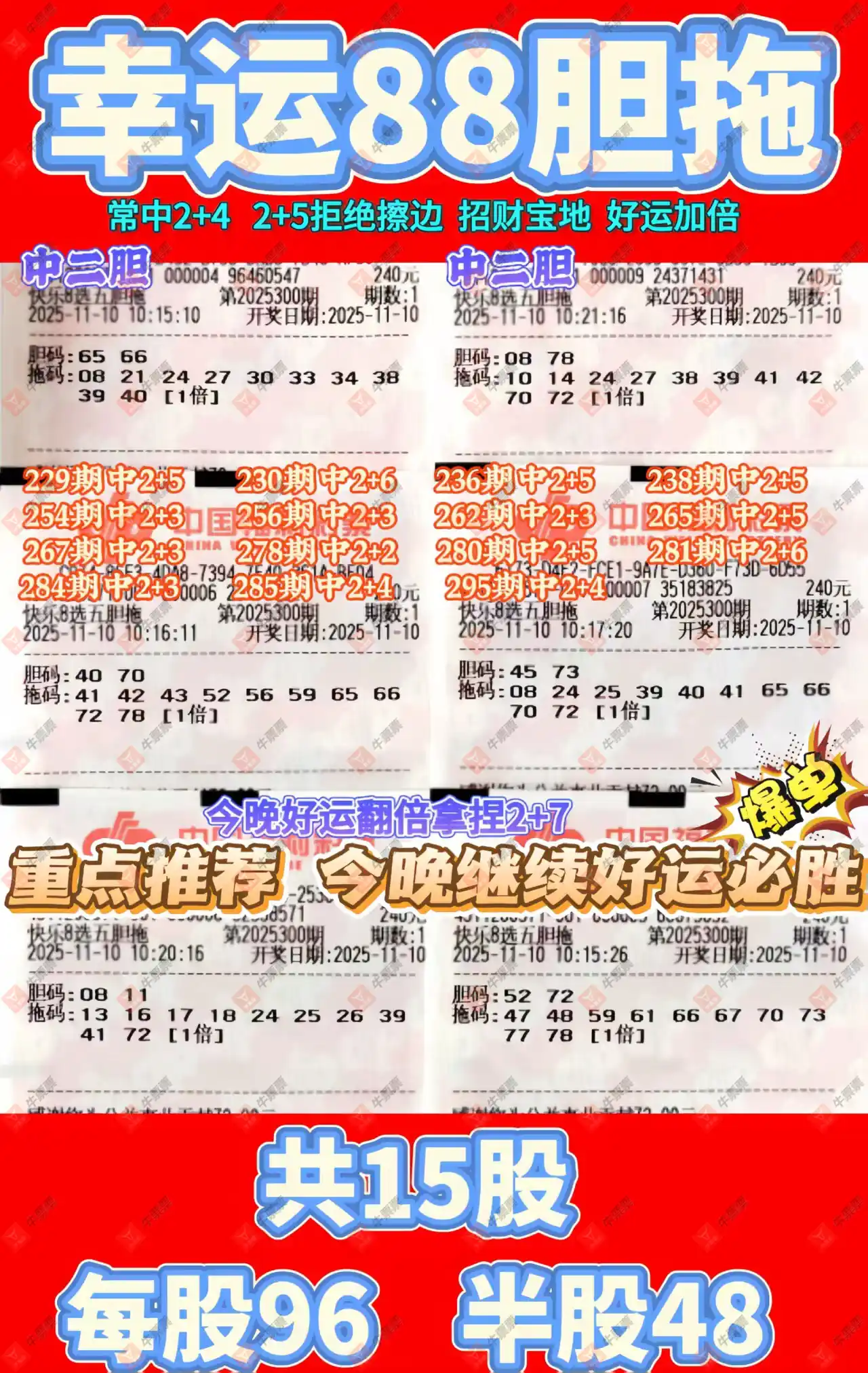 快乐8 2025300期 晒中
