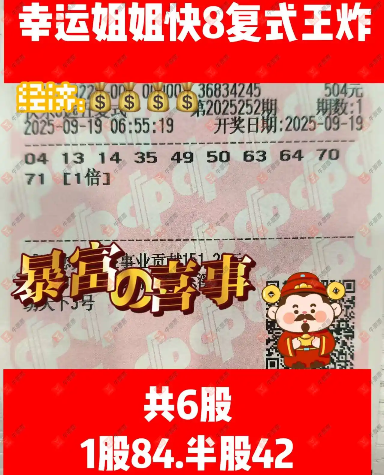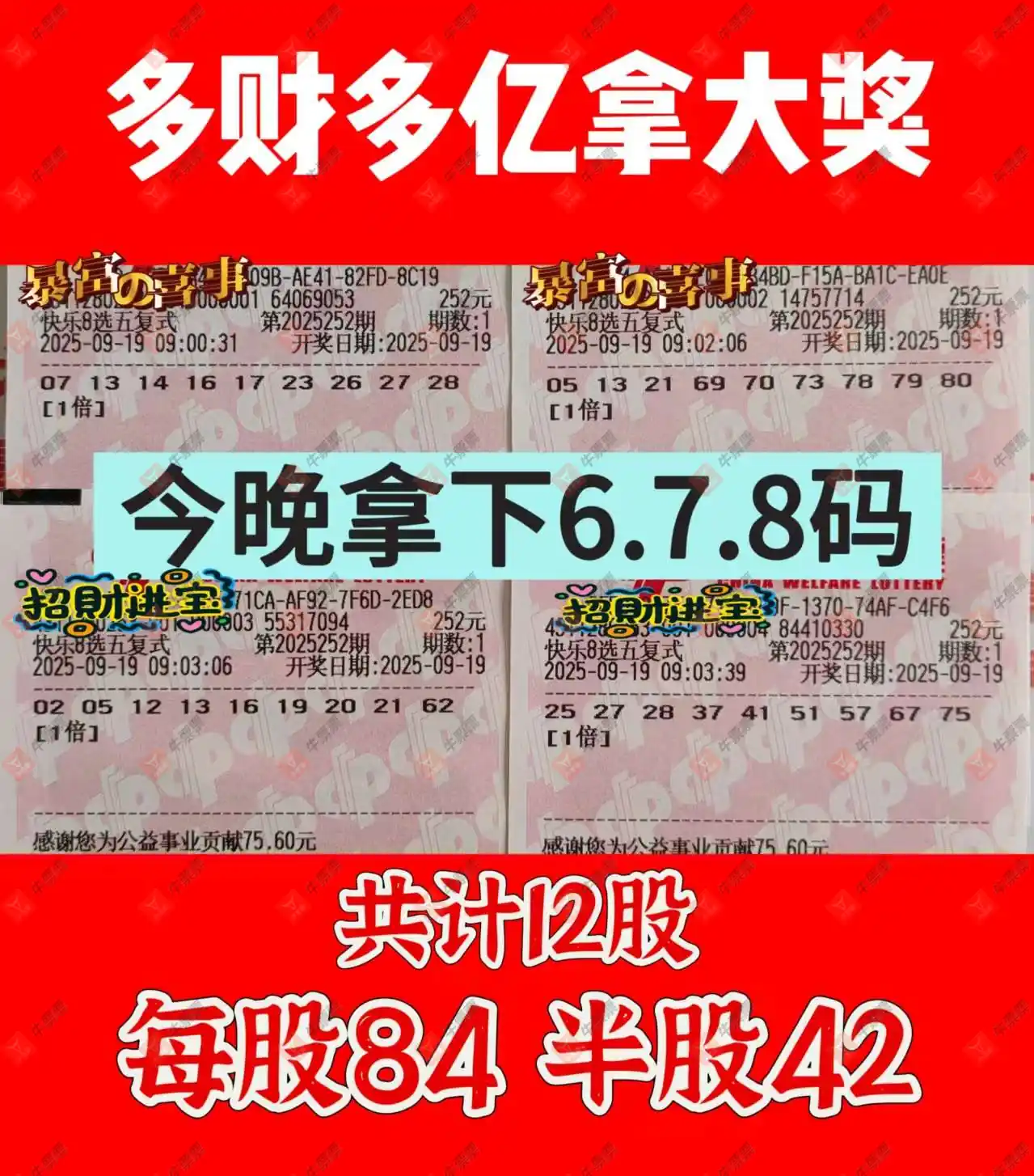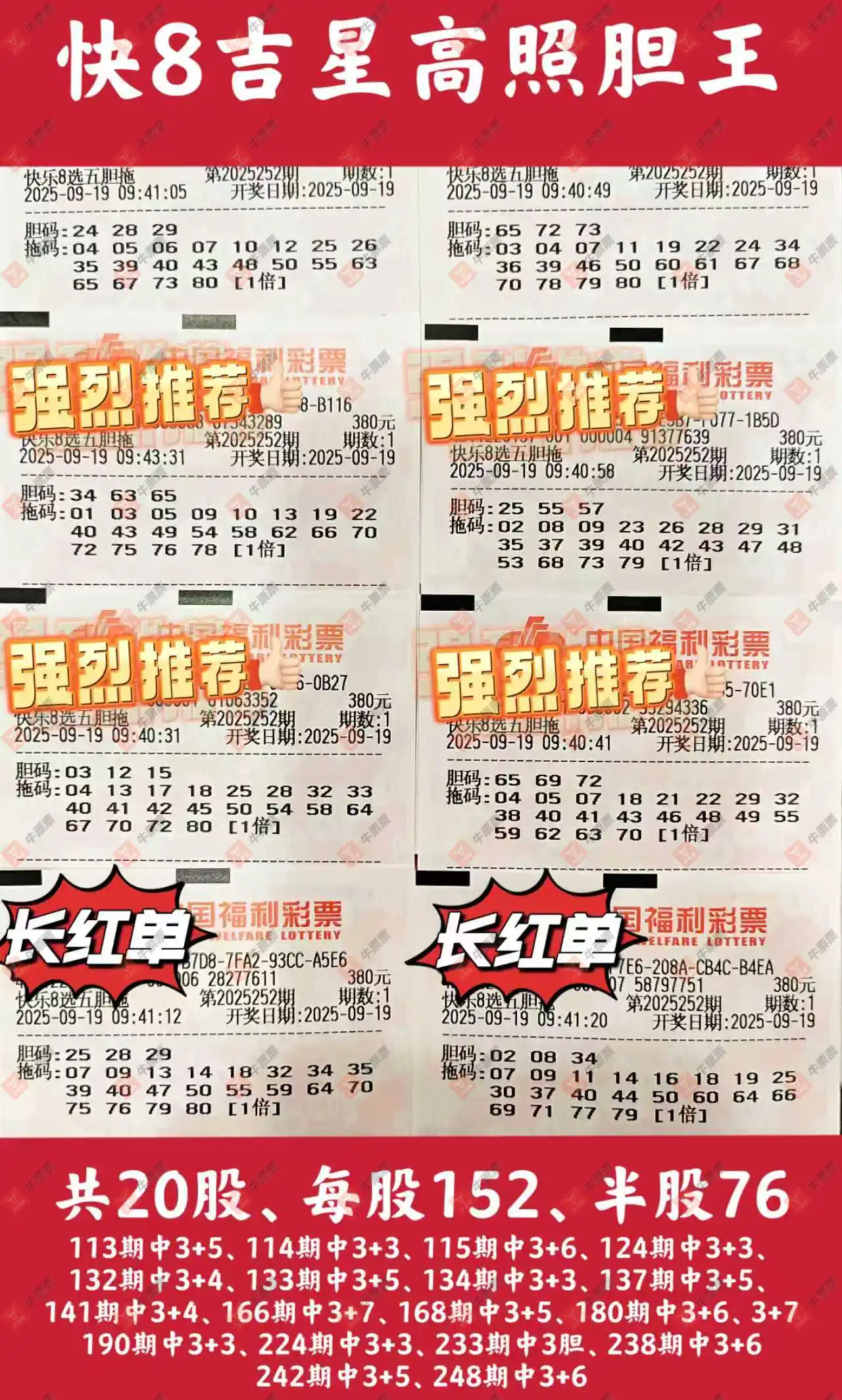 快乐8 2025252期 晒中