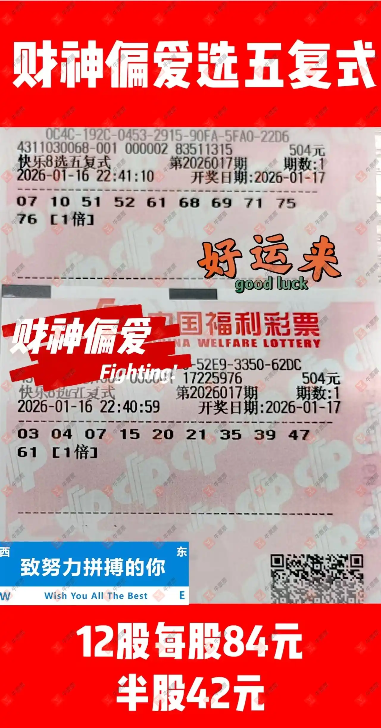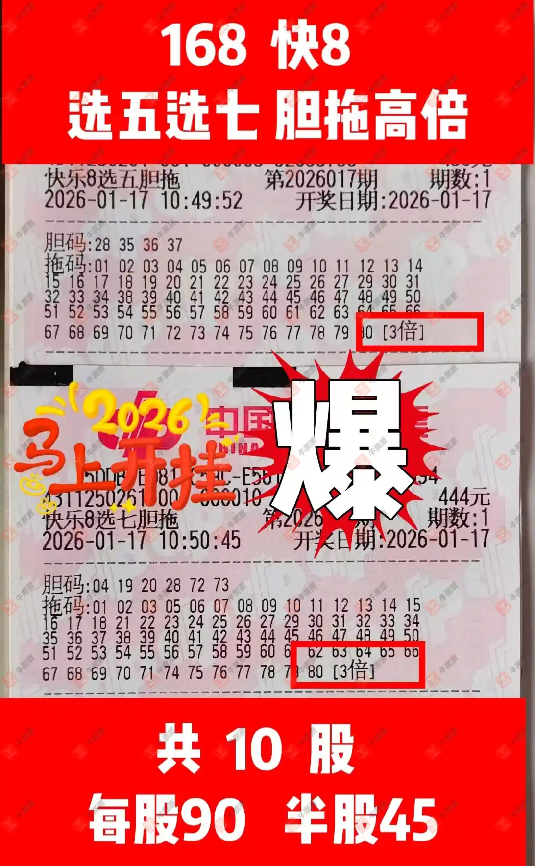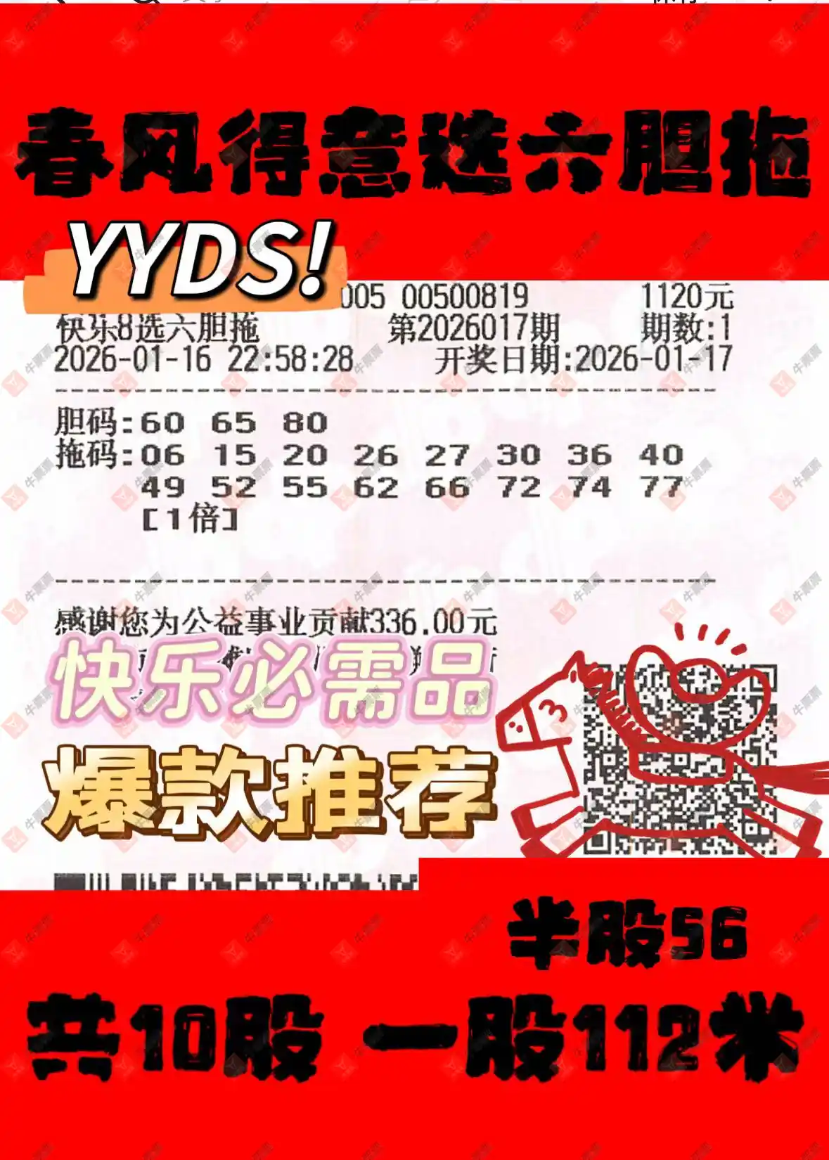 快乐8 2026017期 晒中