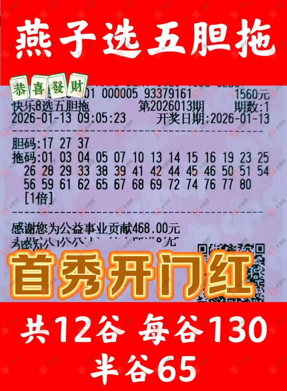 快乐8 2026013期 晒中