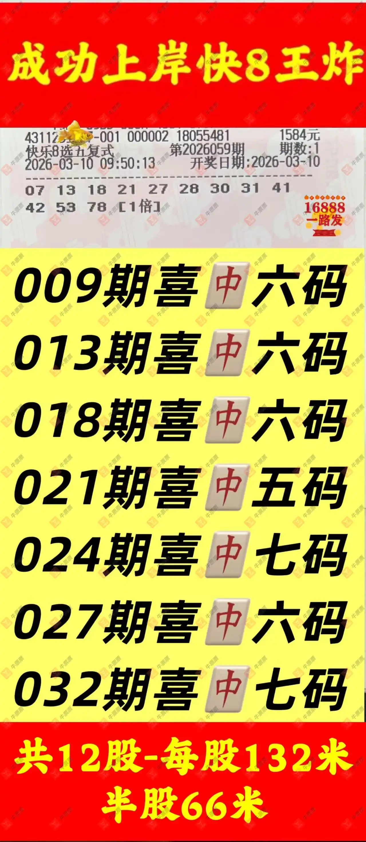 快乐8 2026060期 晒中