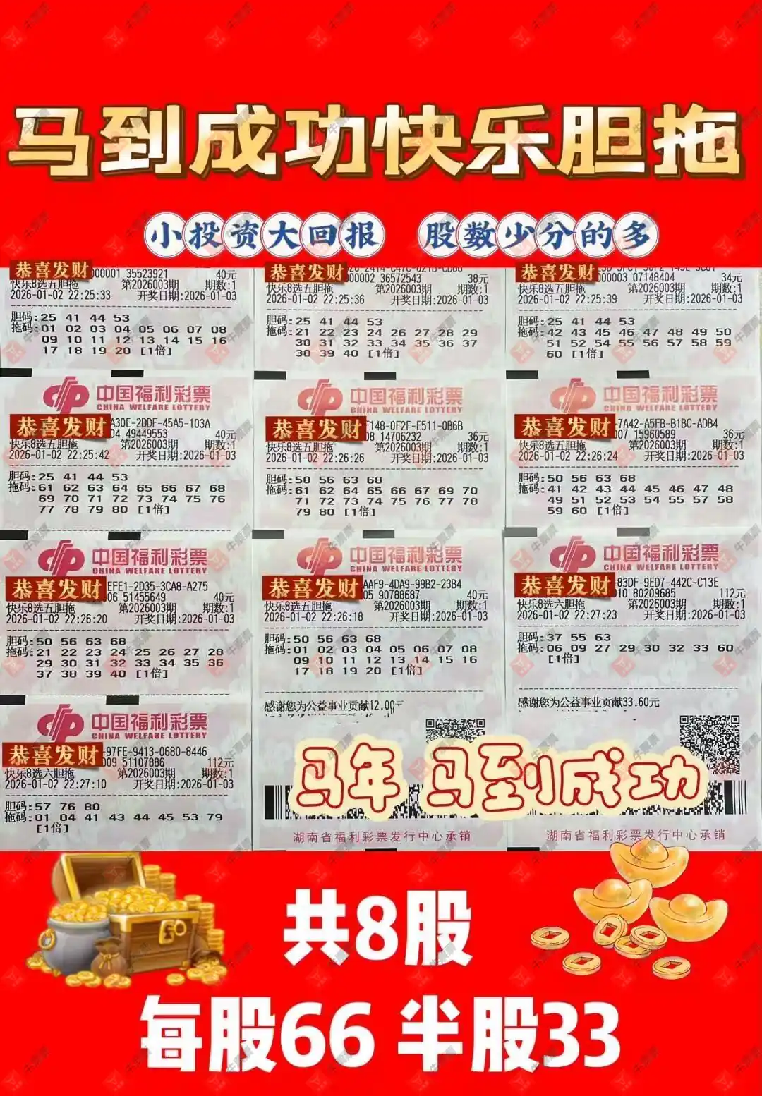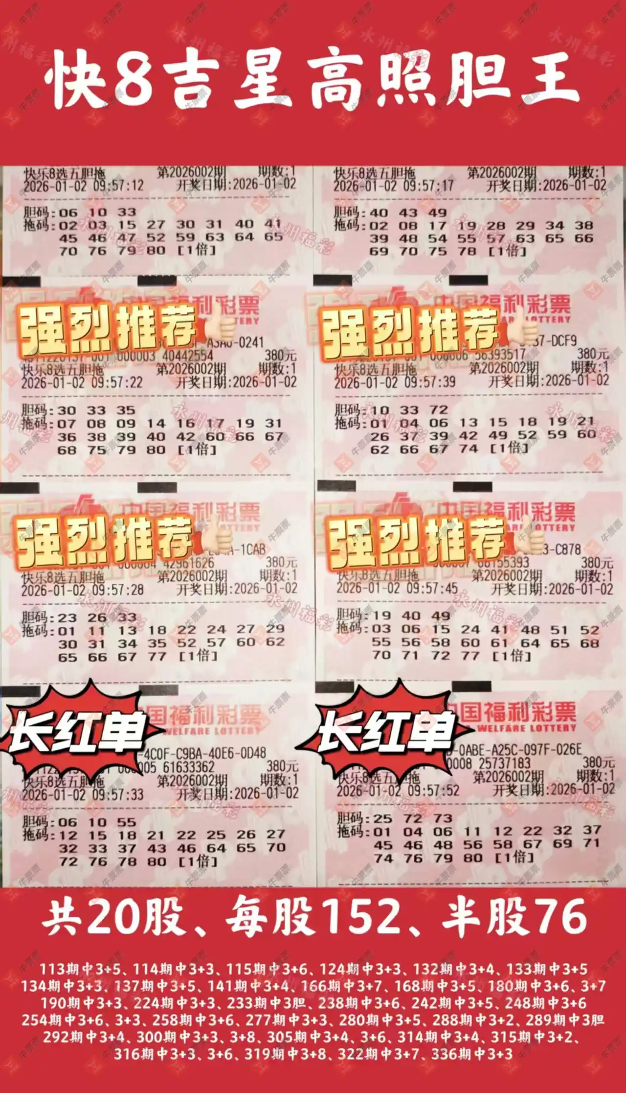 快乐8 2026003期 晒中
