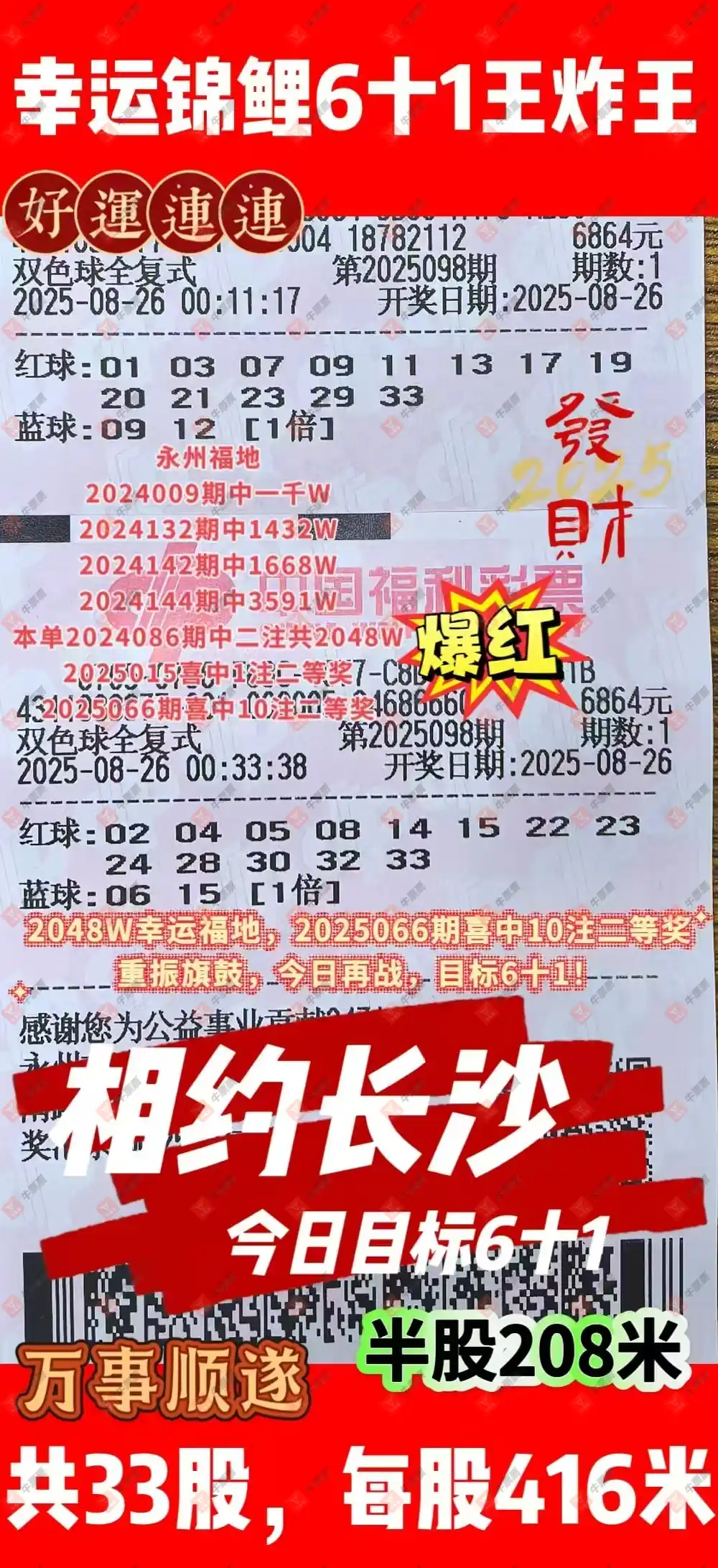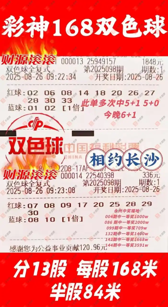 双色球 2025098期 晒中