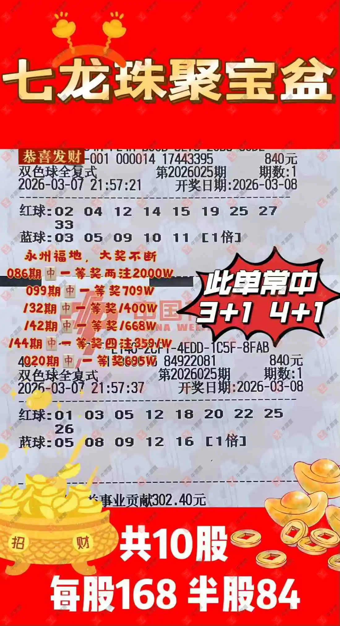 双色球 2026025期 晒中