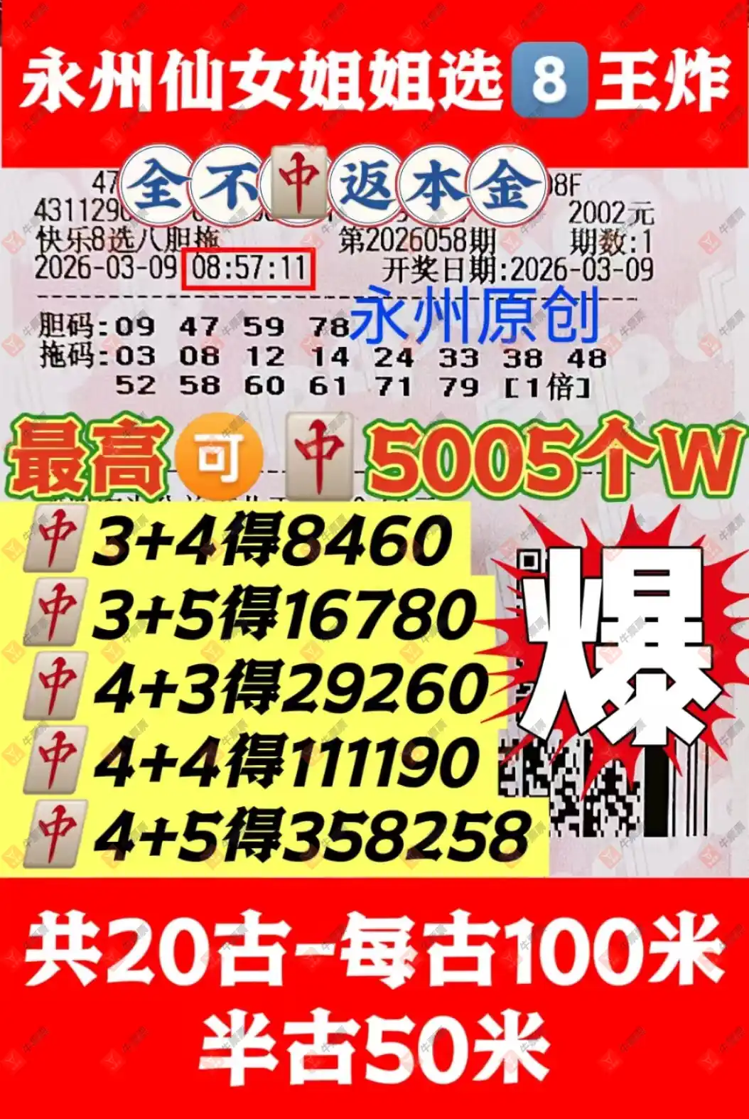 快乐8 2026058期 晒中