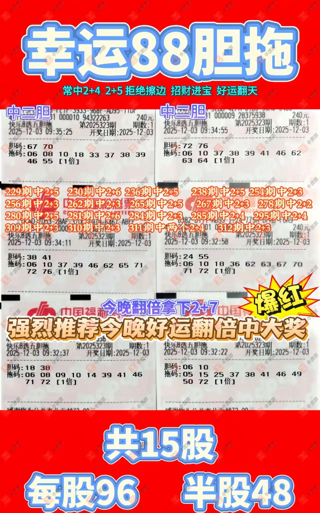 快乐8 2025325期 晒中
