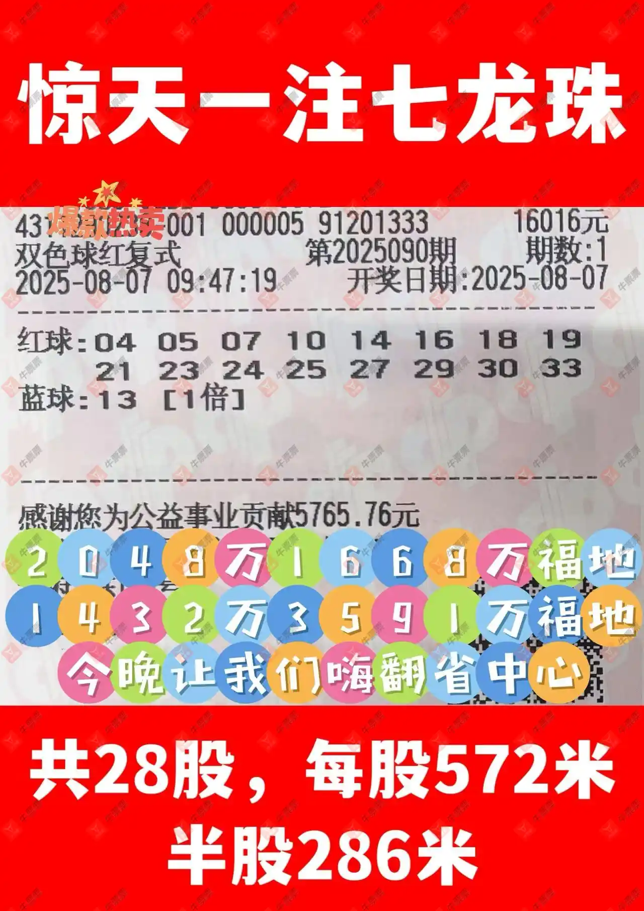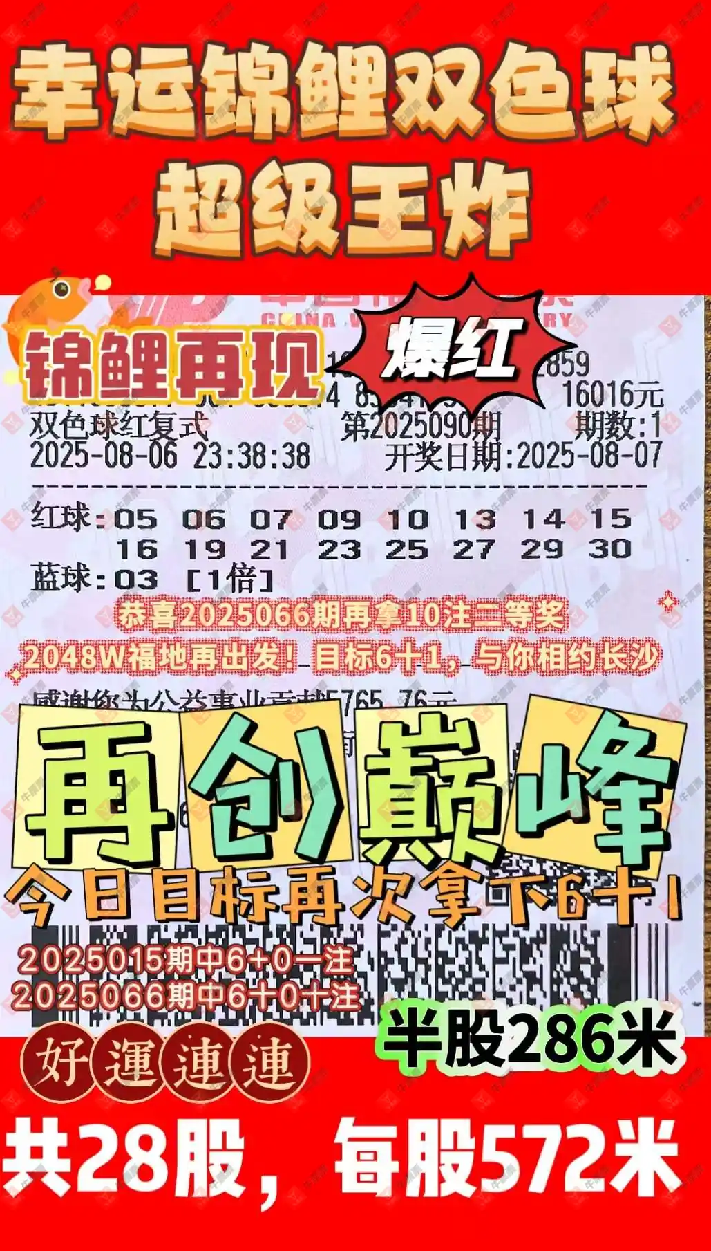 双色球 2025090期 晒中