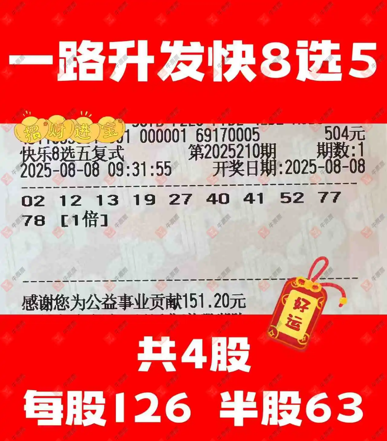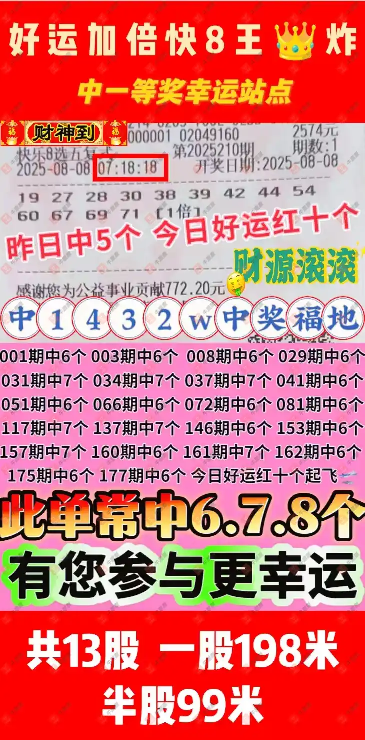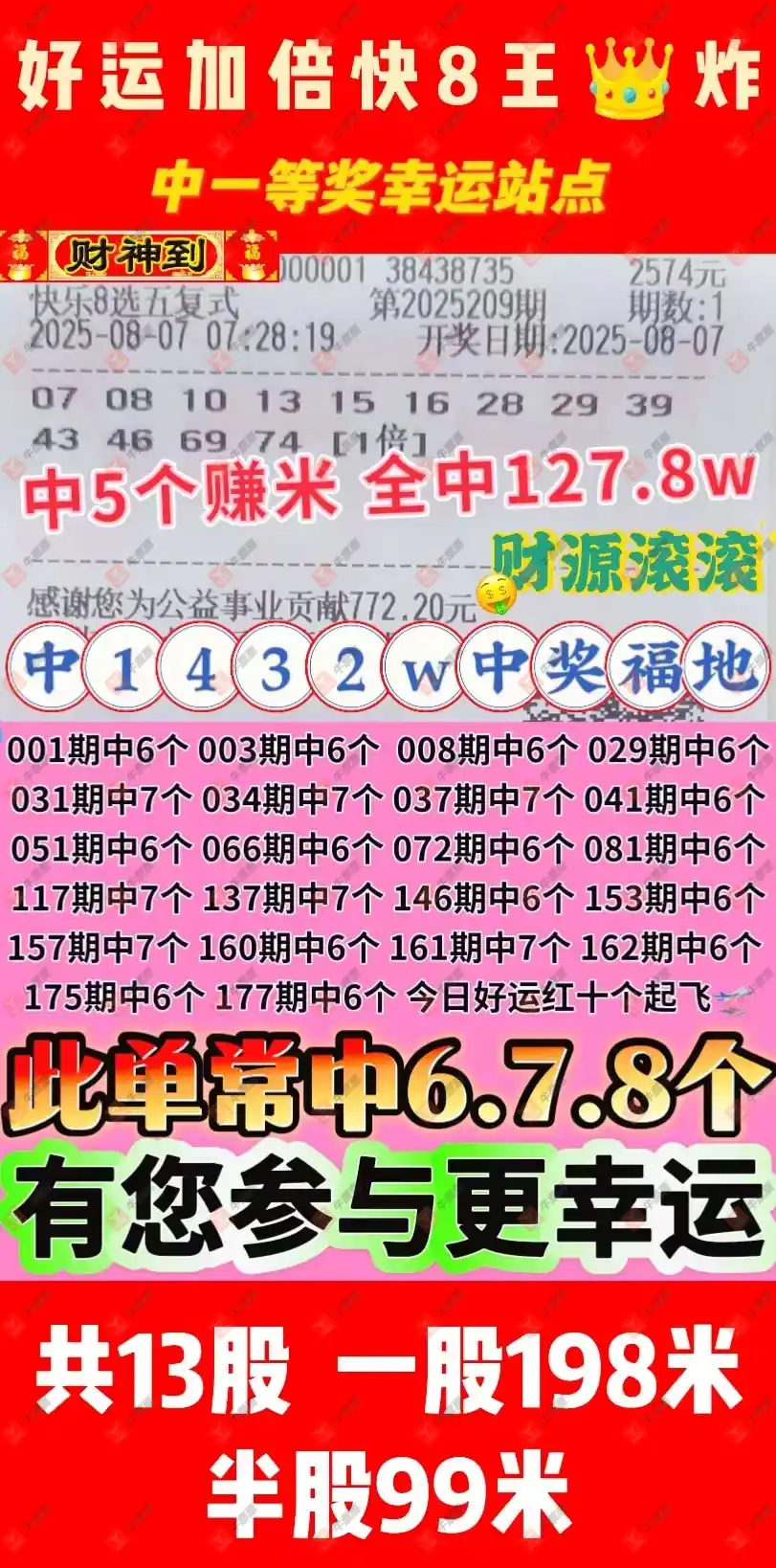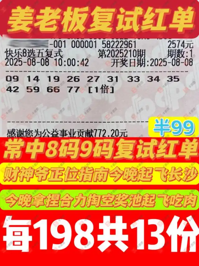 快乐8 2025210期 晒中