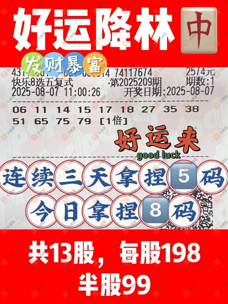 快乐8 2025209期 晒中