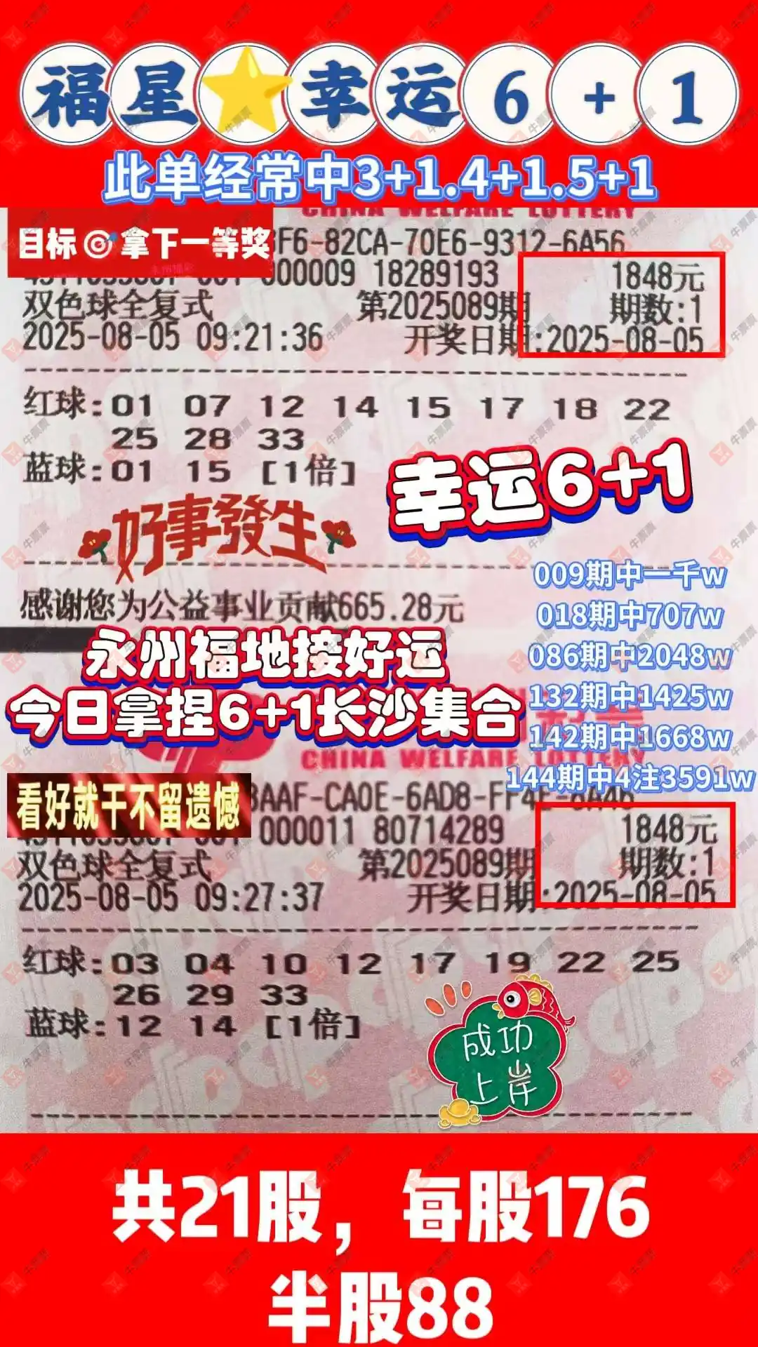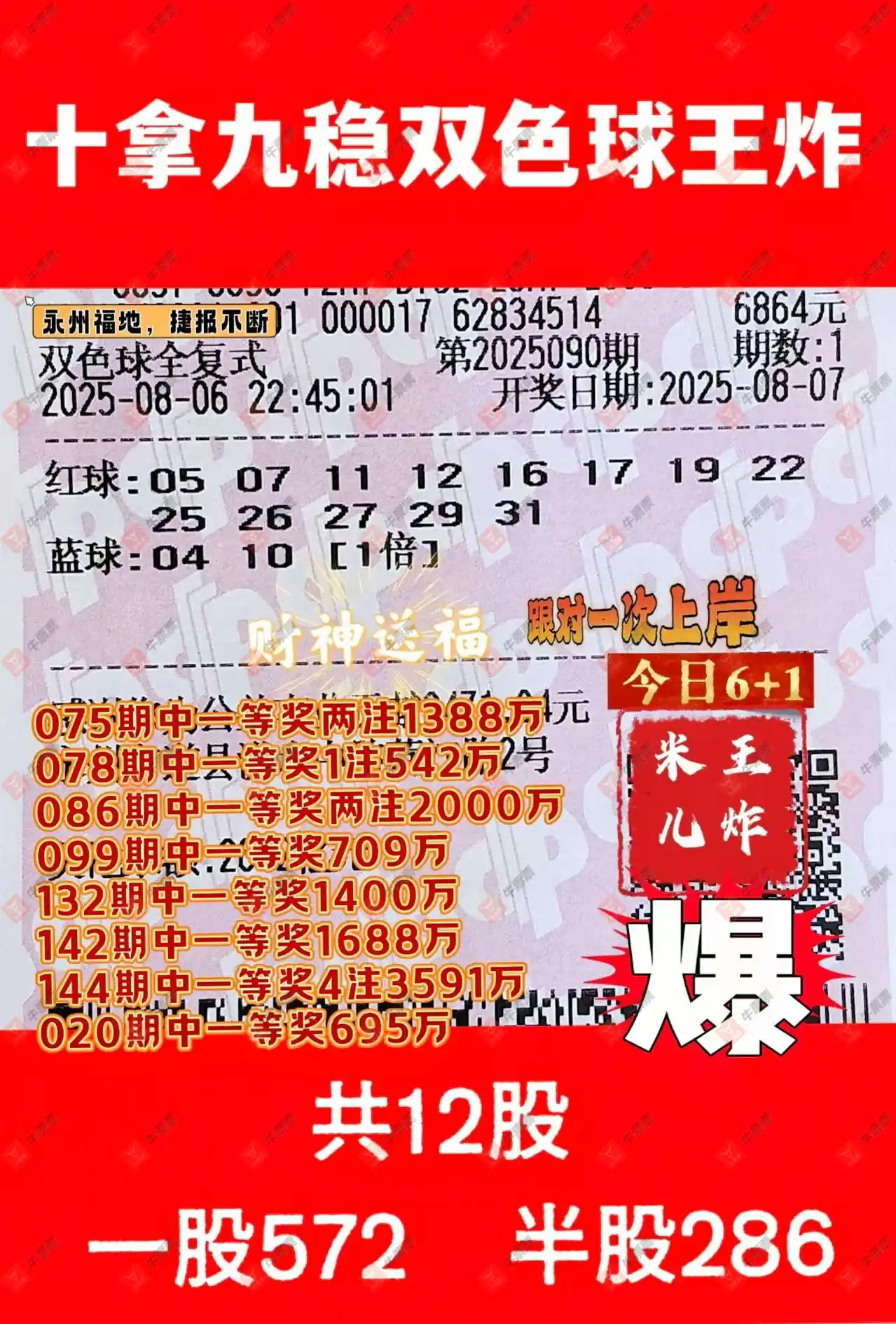双色球 2025089期 晒中