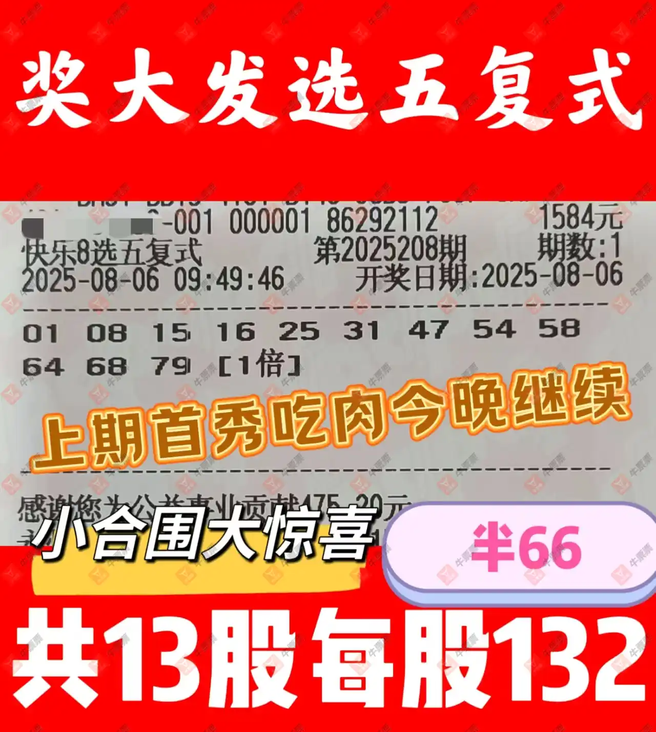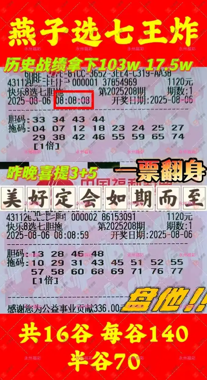 快乐8 2025208期 晒中