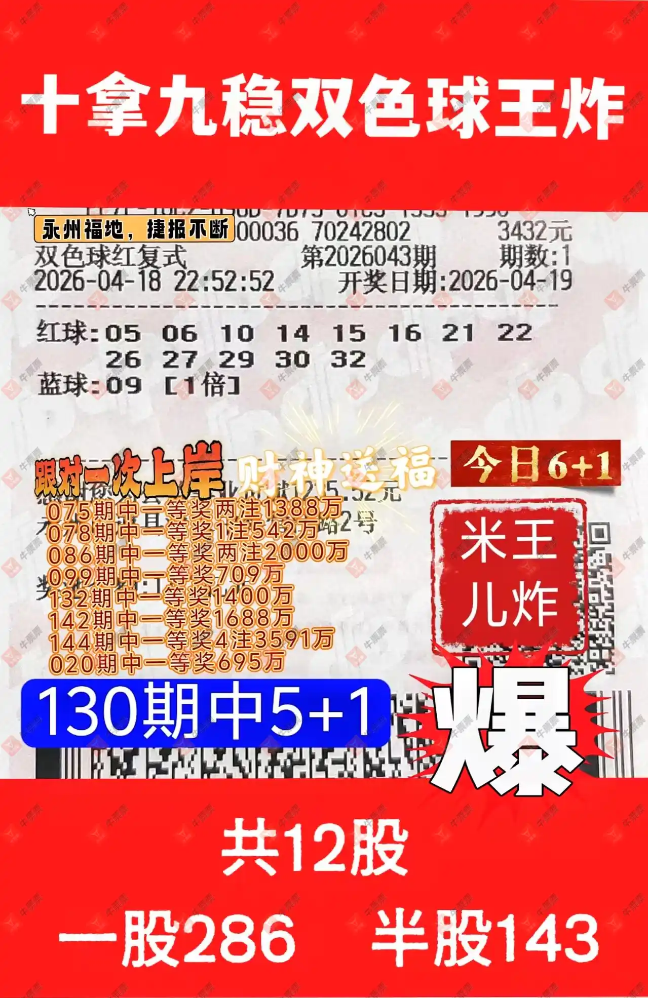 双色球 2026043期 晒中
