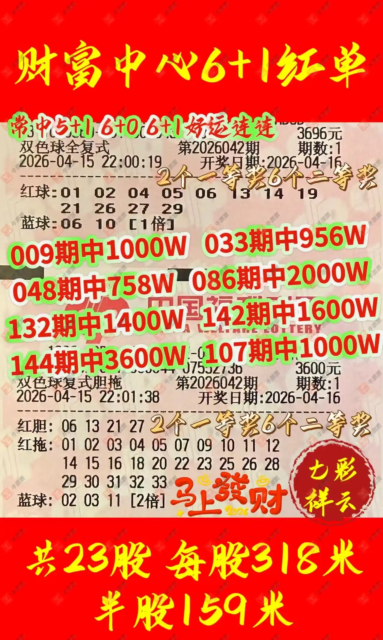 双色球 2026042期 晒中