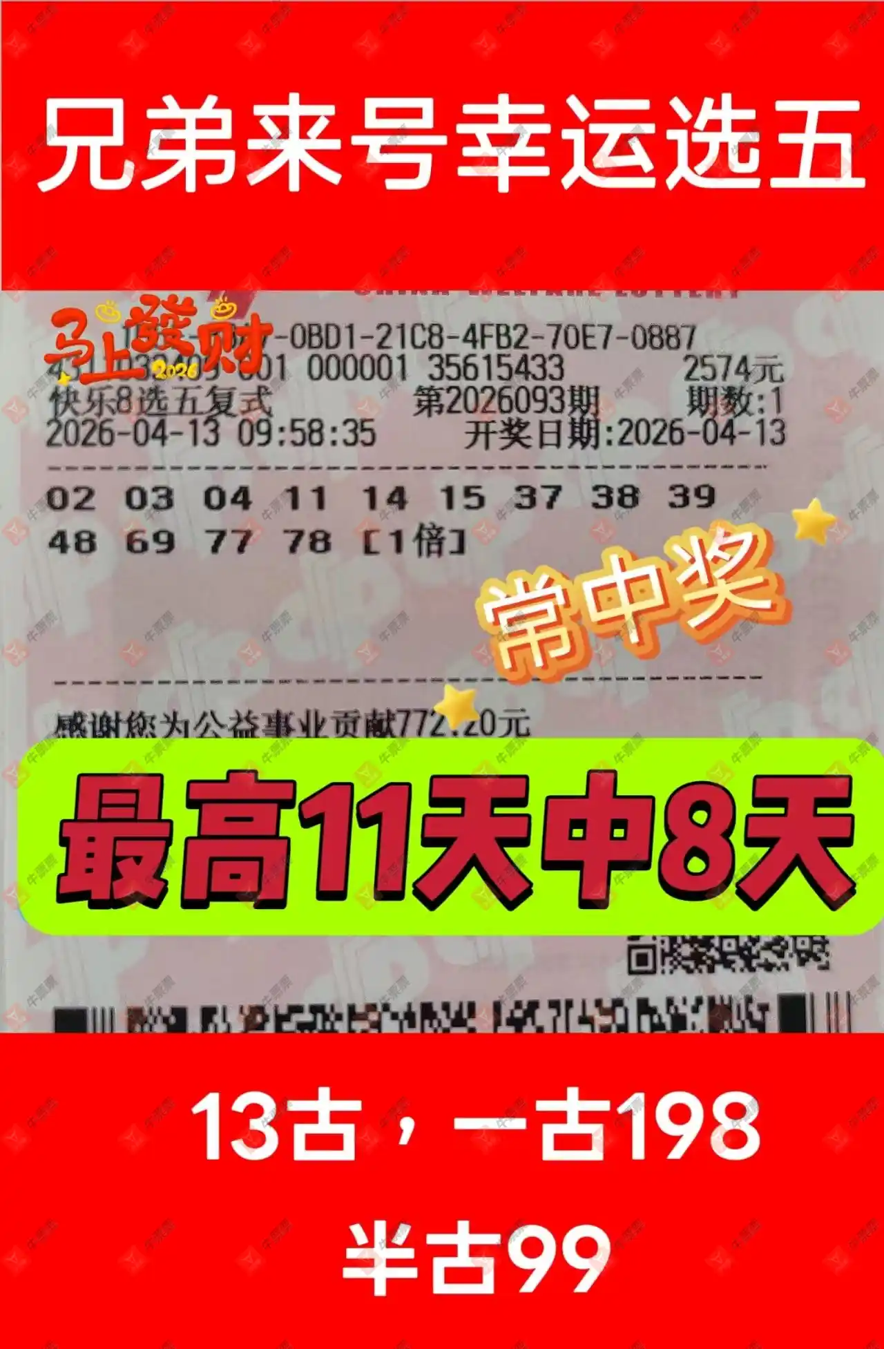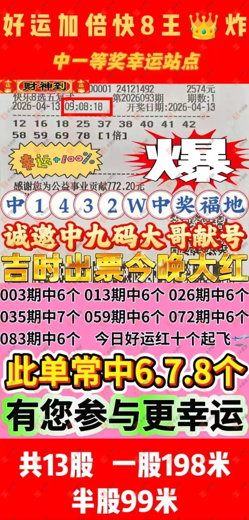 快乐8 2026093期 晒中