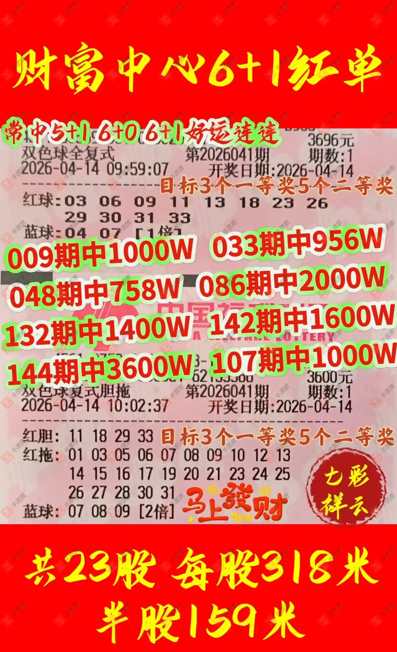 双色球 2026041期 晒中
