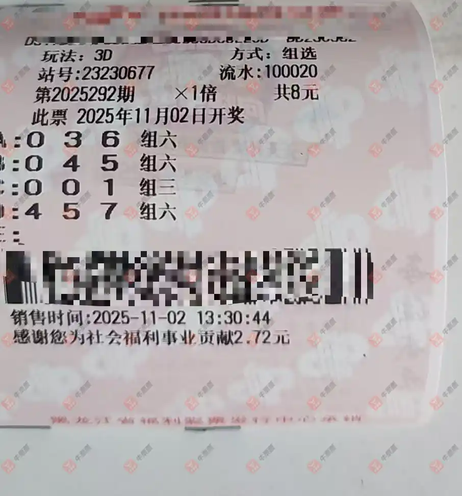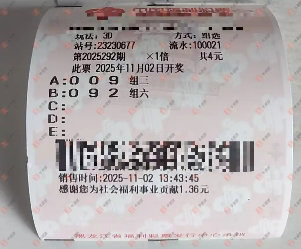 福彩3D 2025292期