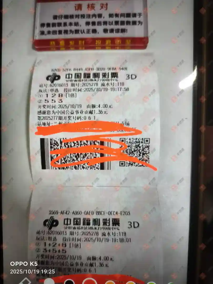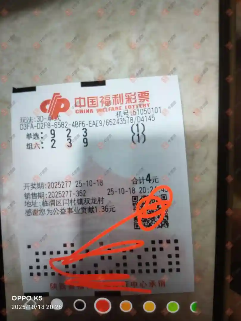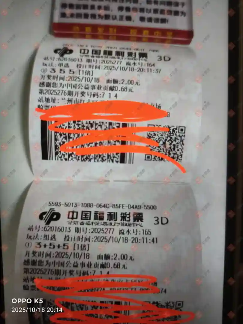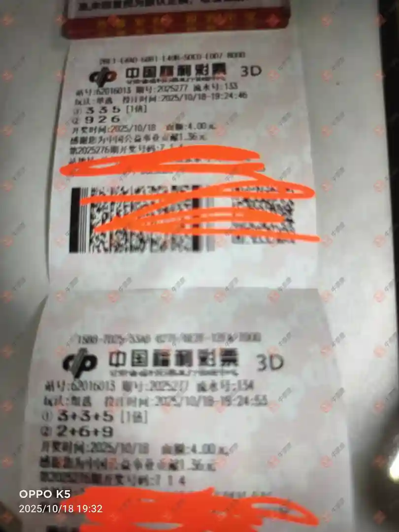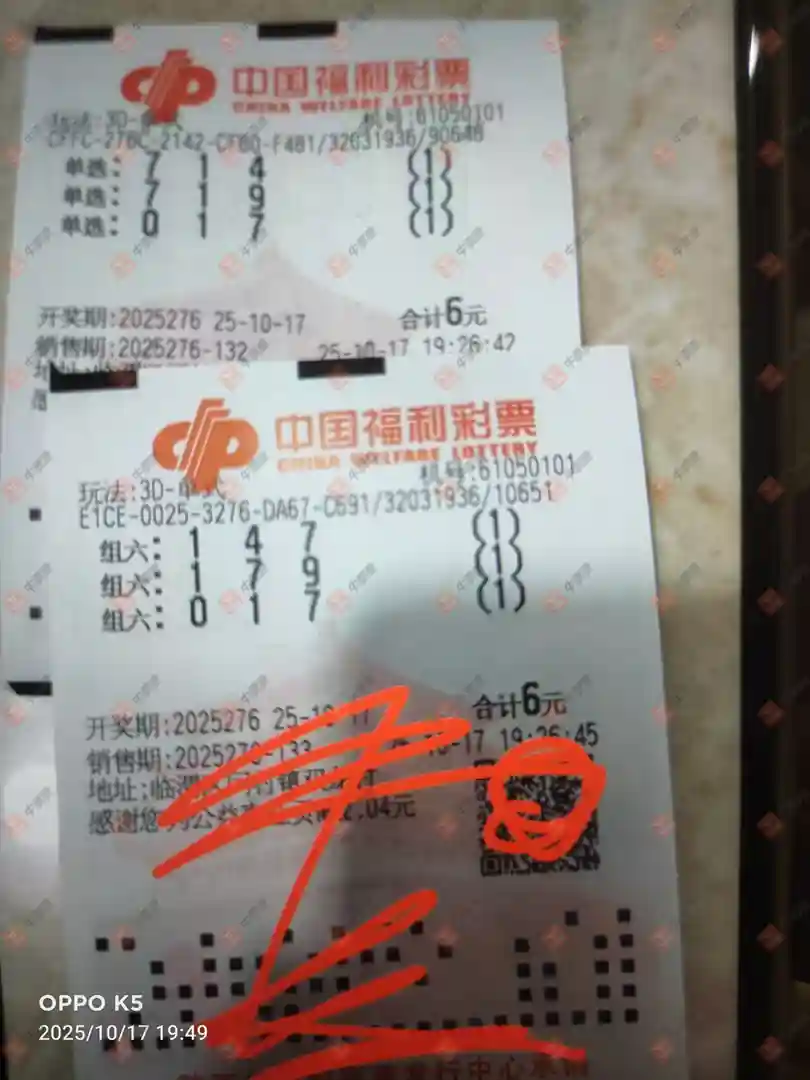 福彩3D 2025276期 晒中