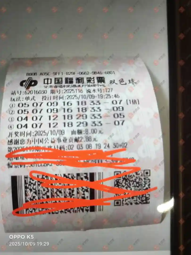 双色球 2025116期 晒中