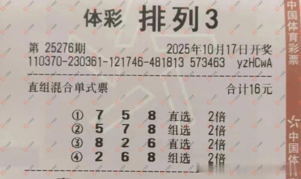 排列三 2025276期 晒中