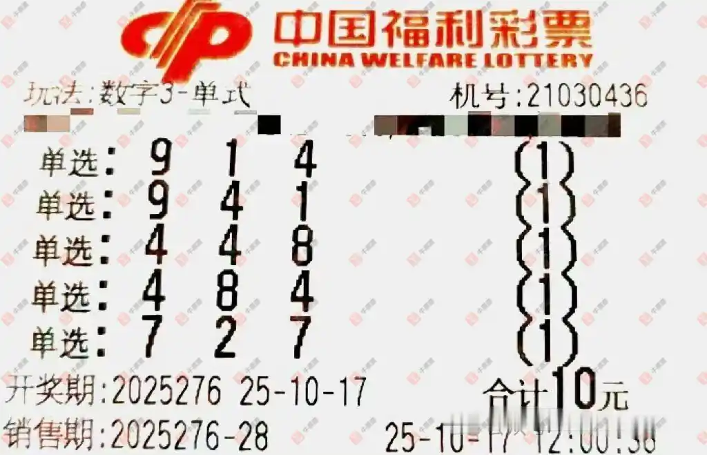 福彩3D 2025276期