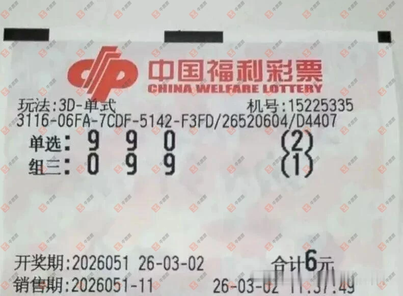 福彩3D 2026051期