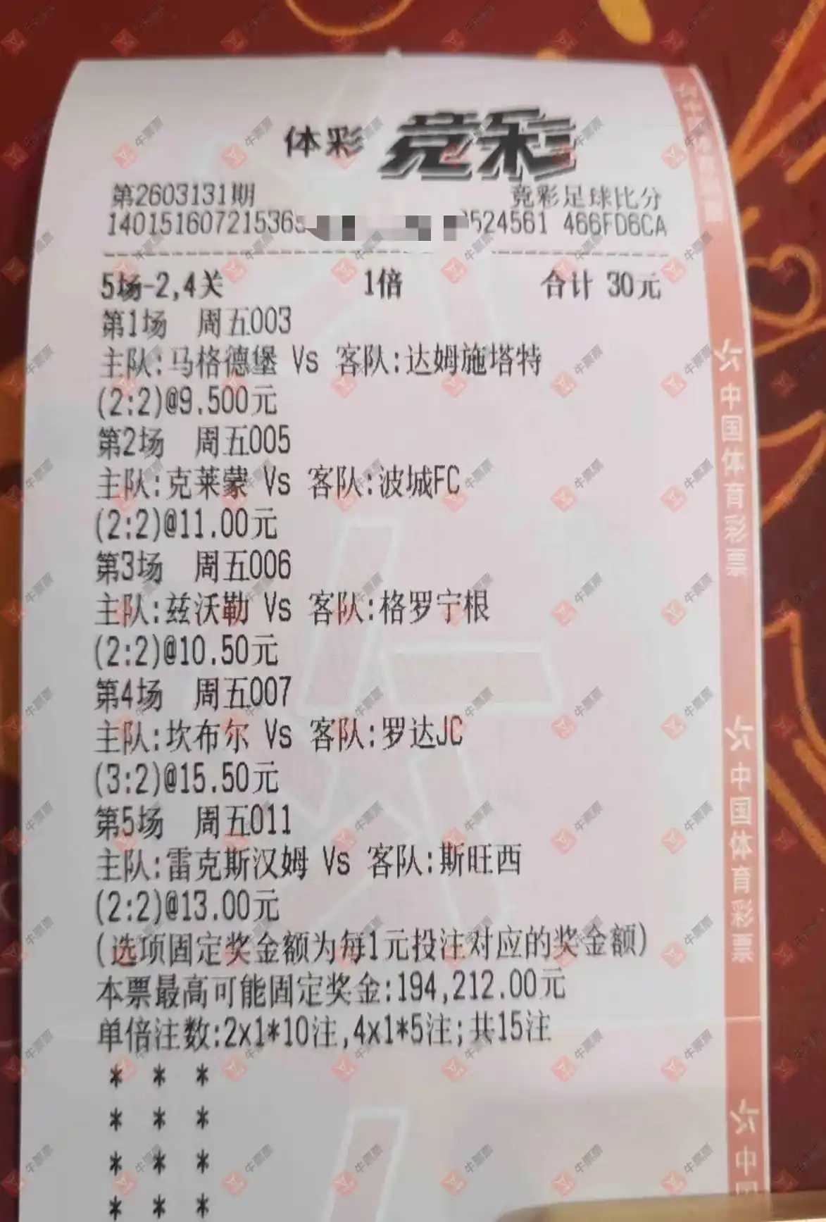 双色球 2026026期 晒中