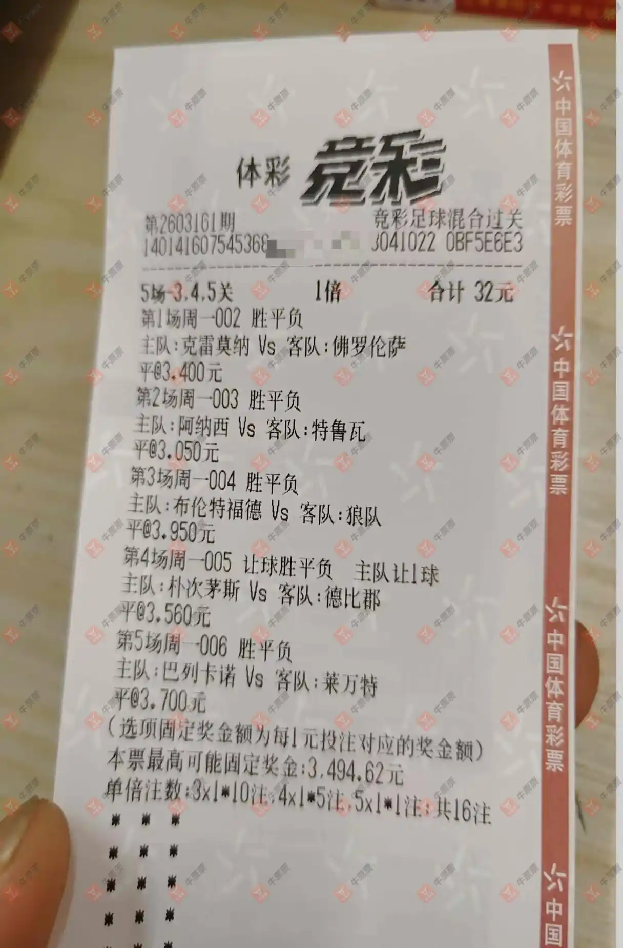 竞彩 20260316期