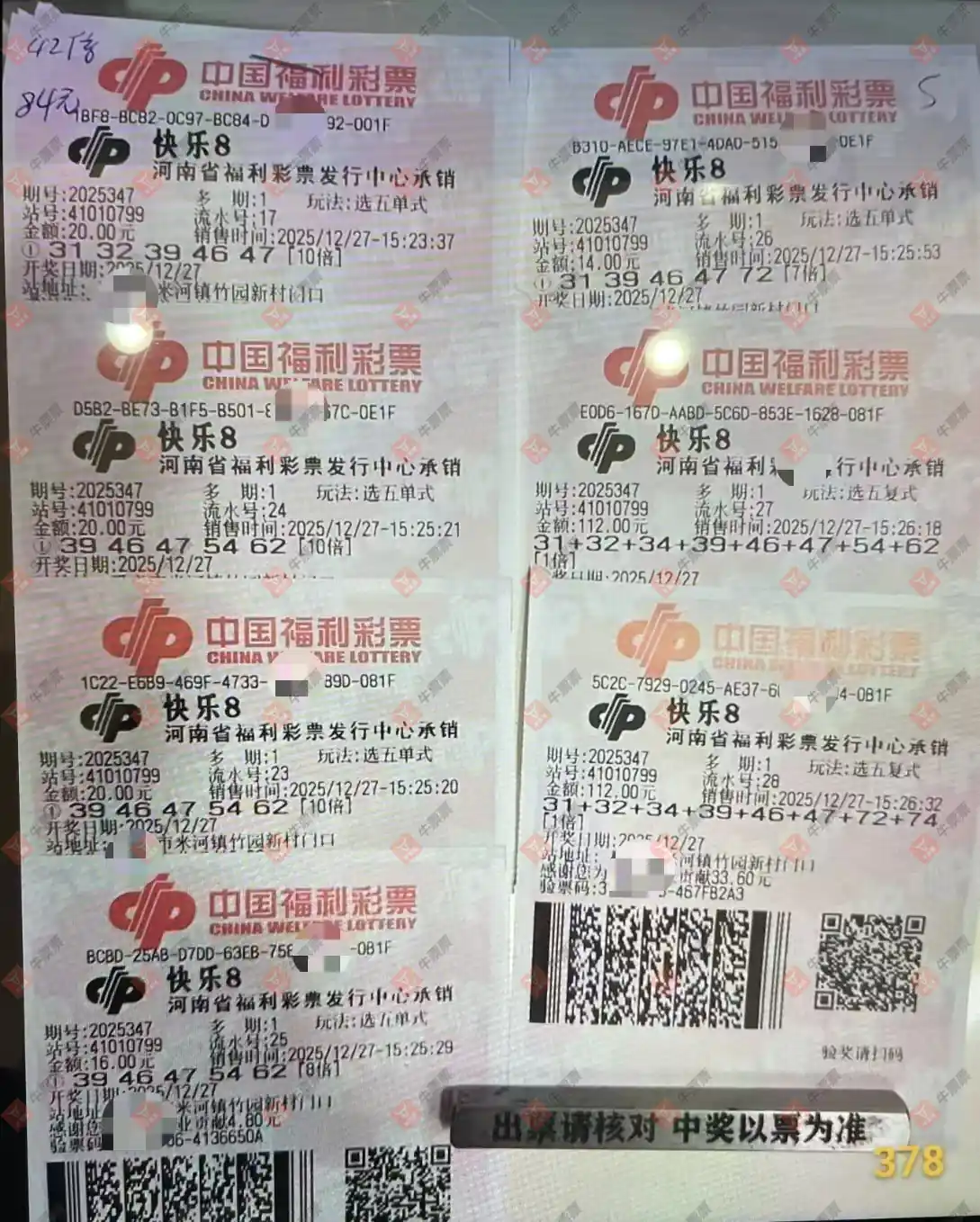 快乐8 2025345期 晒中