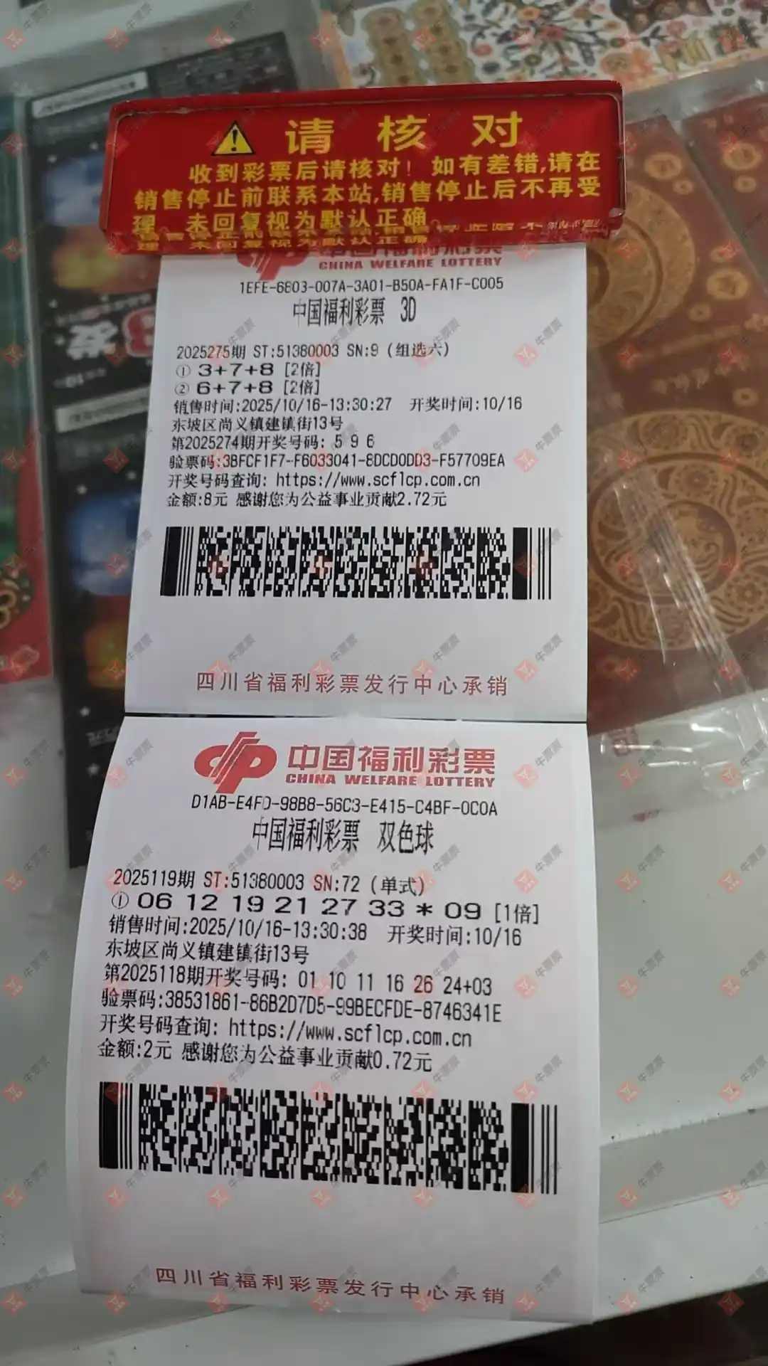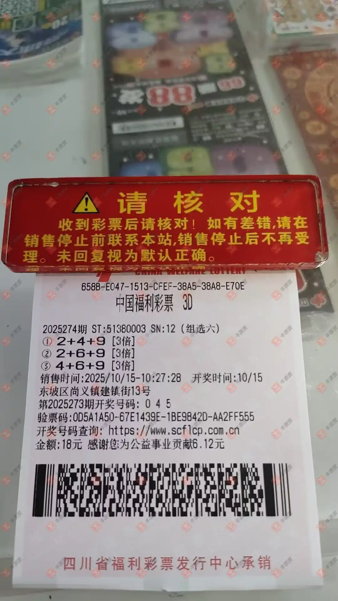 福彩3D 2025272期 晒中