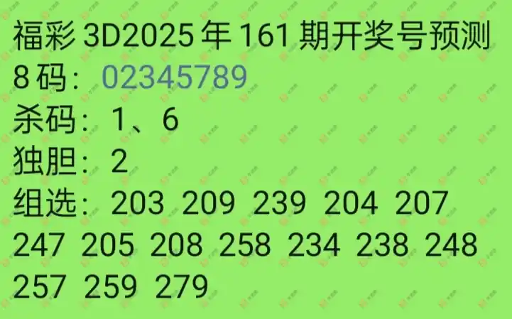福彩3D 2025161期
